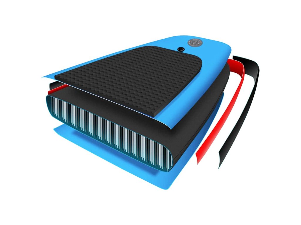 Táto SUP doska je navrhnutá s dokonalými krivkami, ktoré zvyšujú jej tuhosť pre stabilnejšiu jazdu. Táto doska bez námahy kĺže po pokojnej vode, ale jazdí plynulo aj v príboji. Nafukovacia doska SUP je odolná voči prepichnutiu a UV žiareniu. Je vybavená špeciálnymi vysokotlakovými ventilmi, vďaka čomu je jej nafúknutie a vyfúknutie ľahké a rýchle. Odnímateľná plutva je dostatočne pevná, aby odolala tlakom pri pádlovaní. Protišmyková trakčná podložka zaisťuje priľnavosť k doske. Pribalený je aj praktický vak na prenášanie pre ľahkú a rýchlu prepravu.
