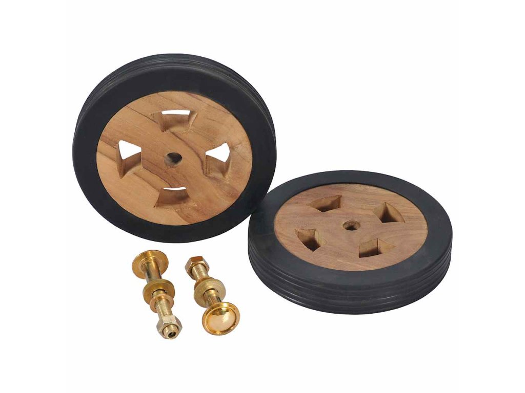 Táto sada 2 náhradných koliesok s priemerom 16 cm vrátane gumeného okraja je určená na drevené vonkajšie ležadlá a má zaujímavý dizajn v štýle pretekárskych ráfikov.
