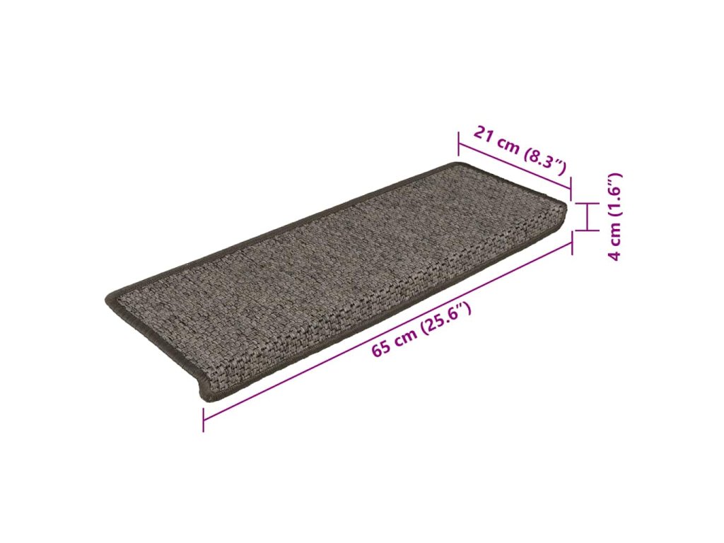 Tieto nášľapy sú vyrobené z pevnej textílie so sisalovým vzhľadom, takže tlmia zvuk, sú protišmykové, teplé a pohodlné. Nášľapy sa dajú oprať a sú zložené tak, aby chránili vrchnú aj prednú časť schodu. Vďaka lepiacim páskam na zadnej strane sa dajú tieto rohože jednoducho a rýchlo pripevniť na schody.