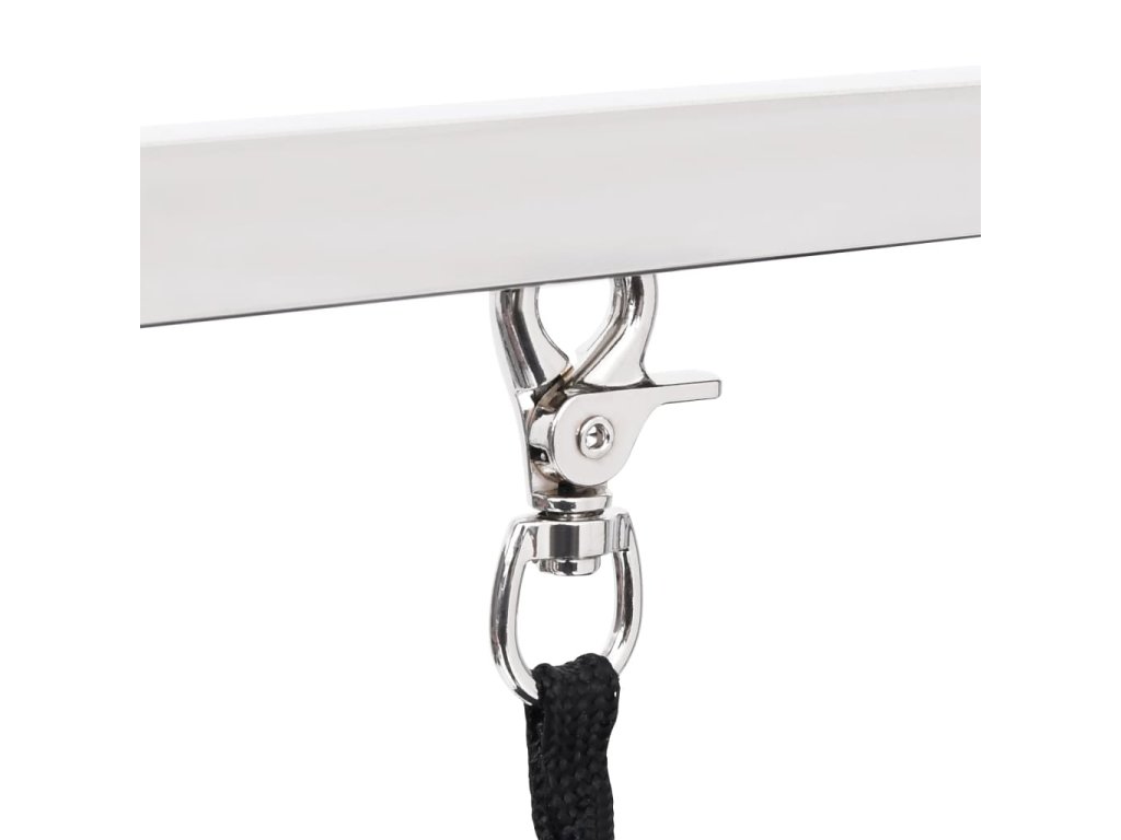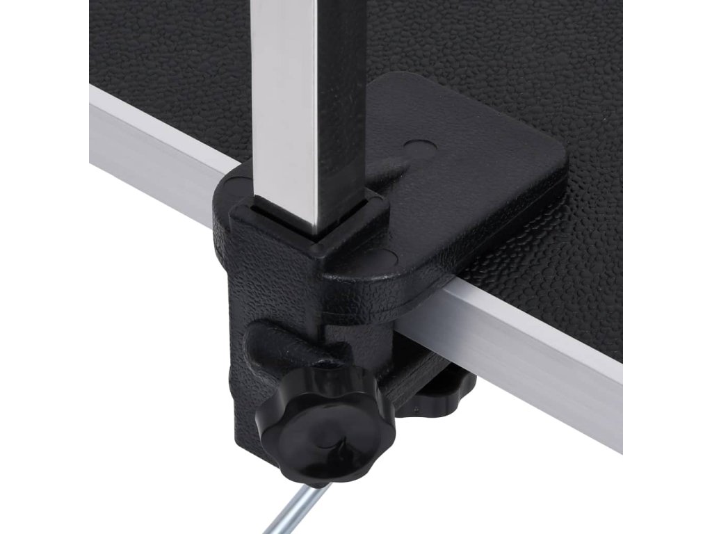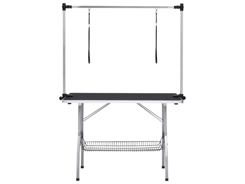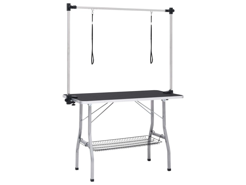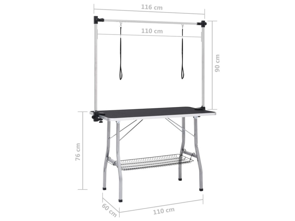 Tento stôl na úpravu domácich miláčikov je podopretý oceľovými nohami, vďaka čomu je stabilný a odolný. Veľká protišmyková doska stola vytvára pohodlný povrch pre státie vašich miláčikov. Nerezové trimovacie rameno je navyše výškovo nastaviteľné. Môžete ho teda nastaviť v perfektnej výške, ktorá vyhovuje vám a veľkosti vášho domáceho maznáčika. Stolík je skladací, čo je ideálne riešenie pre mobilitu pri úprave domácich miláčikov a aj pre domáce použitie, pretože sa ľahko skladuje. Pod stolovou doskou je kôš, do ktorého je možné uložiť domáce predmety dennej potreby. Navyše, zaoblené rohy zabraňujú zraneniam.