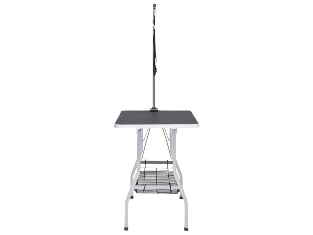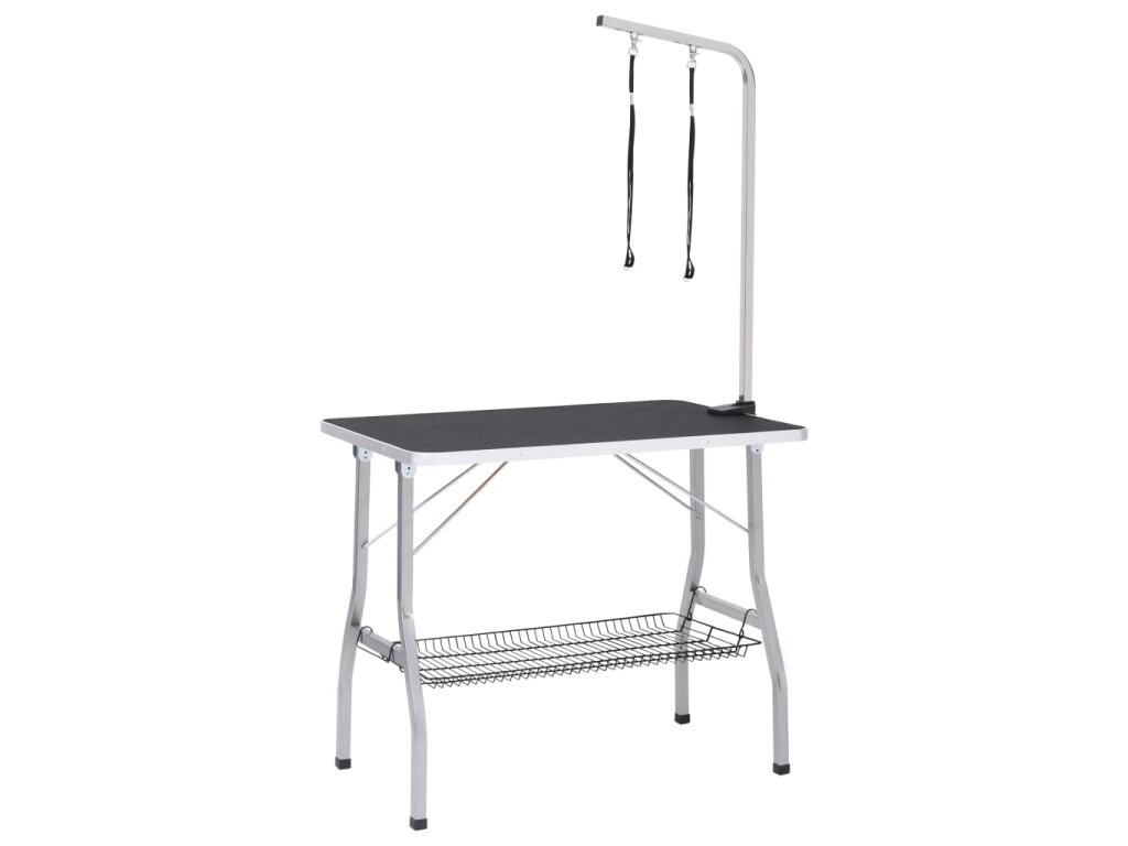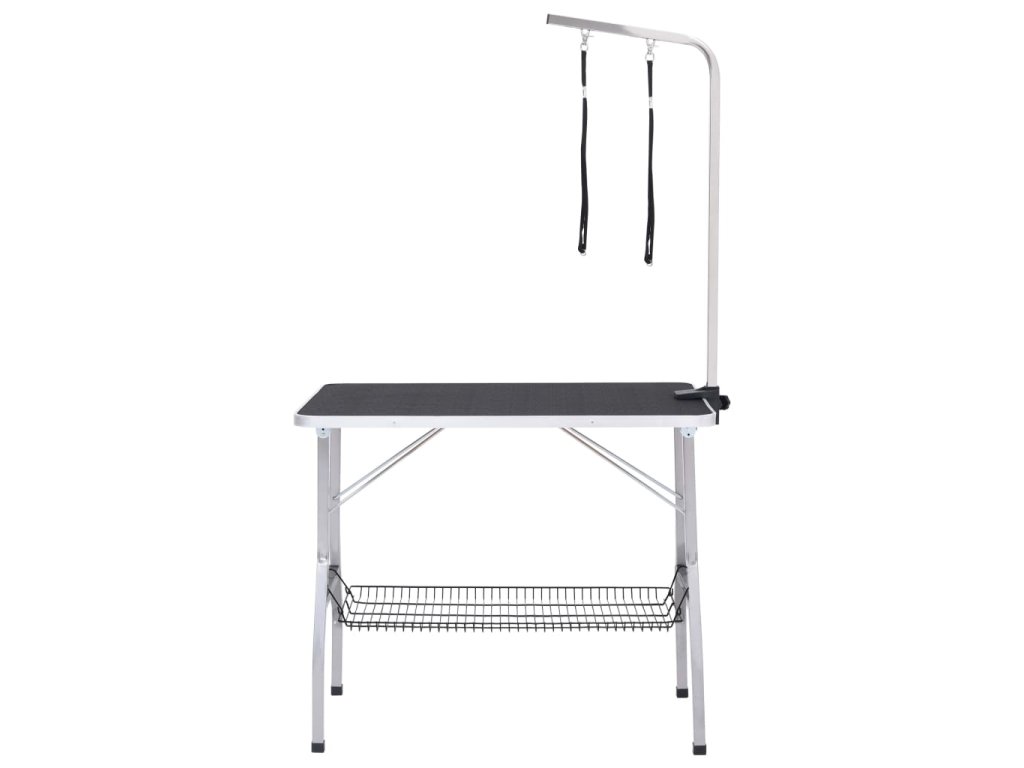 Tento stôl na úpravu domácich miláčikov je podopretý oceľovými nohami, vďaka čomu je stabilný a odolný. Veľká protišmyková doska stola vytvára pohodlný povrch pre státie vašich miláčikov. Nerezové trimovacie rameno je navyše výškovo nastaviteľné. Môžete ho teda nastaviť v perfektnej výške, ktorá vyhovuje vám a veľkosti vášho domáceho maznáčika. Stolík je skladací, čo je ideálne riešenie pre mobilitu pri úprave domácich miláčikov a aj pre domáce použitie, pretože sa ľahko skladuje. Pod stolovou doskou je kôš, do ktorého je možné uložiť domáce predmety dennej potreby. Navyše, zaoblené rohy zabraňujú zraneniam.