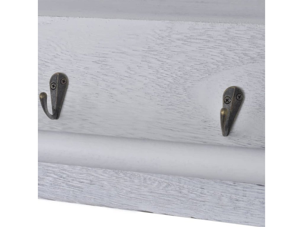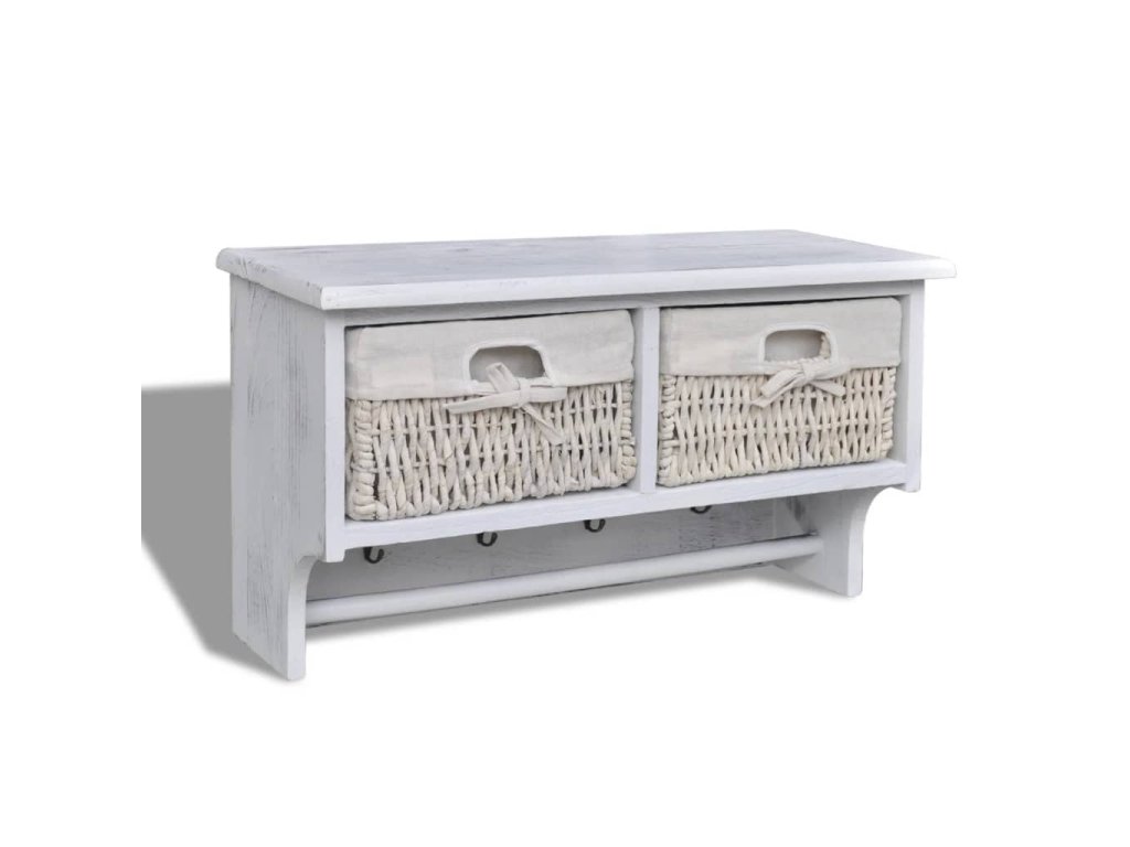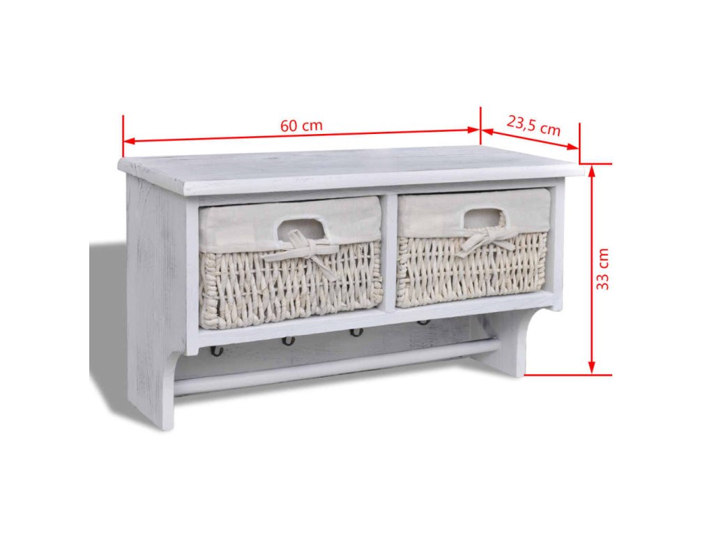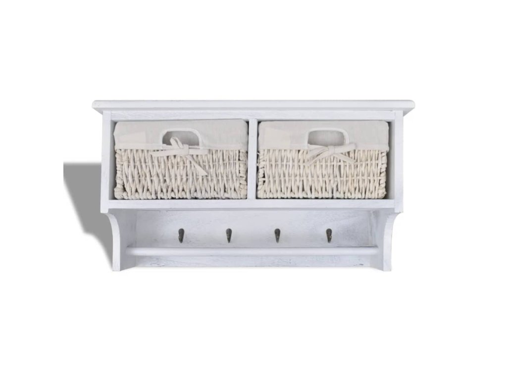 Obsahuje dva koše, ktoré sú taktiež veľmi robustné. Štyri kovové háčiky vám poskytnú veľa priestoru na zavesenie vecí, ako sú kľúče, klobúky alebo rukavice, a priečna lišta je ideálna napríklad na uloženie uterákov. Uistite sa, že policu namontujete do vhodnej výšky.