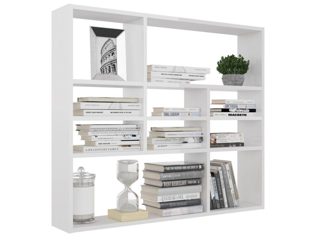 Nástenná polica je vyrobená z kompozitného dreva, vďaka čomu je robustná a trvácna. Obsahuje 10 otvorených priečinkov, ktoré slúžia ako ideálne miesto na vystavenie rôznych predmetov, napríklad kníh, zberateľských kúskov, fotiek, ocenení, kvetov v kvetináčoch a podobne. Navyše sa dá ľahko očistiť navlhčenou handričkou.