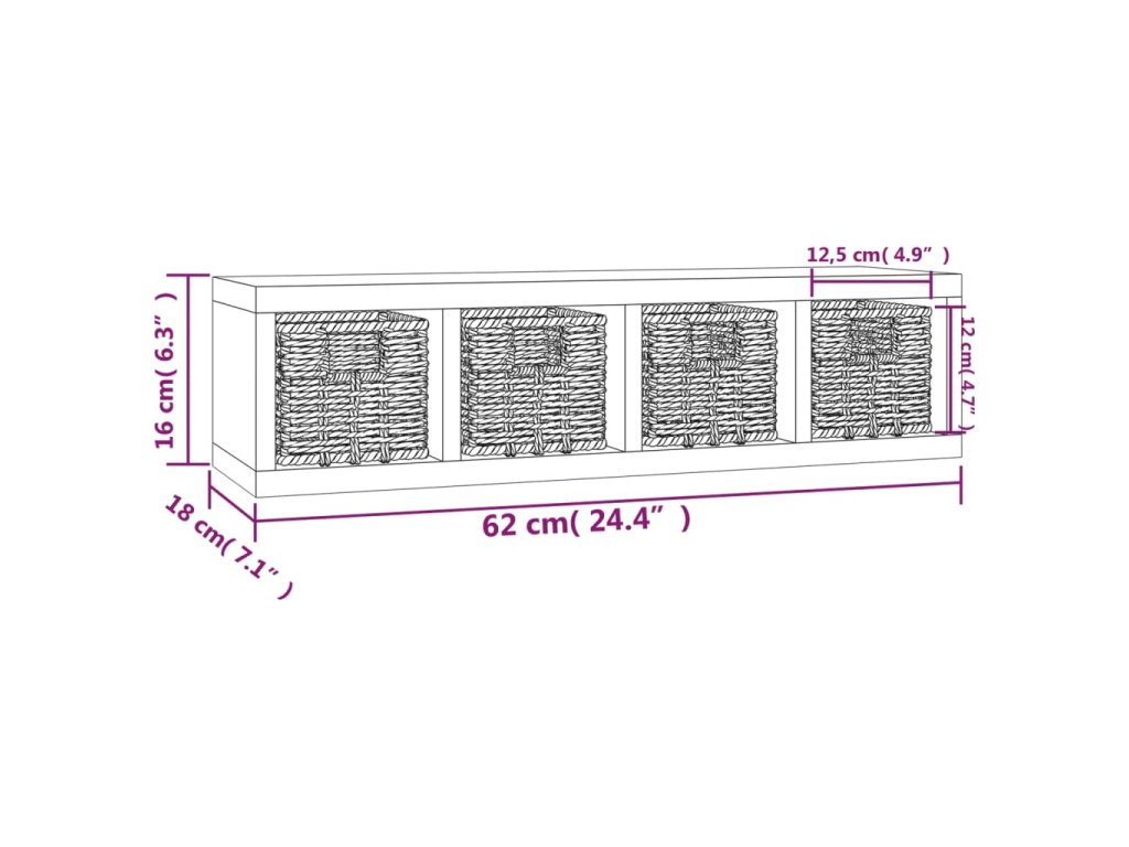 - Praktické koše: Táto plávajúca polica má 4 vyberateľné koše a je ideálna na umiestnenie CD, herných systémov, kníh, časopisov a dekoratívnych predmetov.