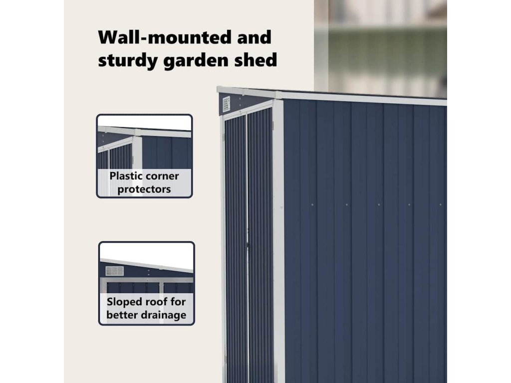 Tento nástenný záhradný domček je ideálny na uskladnenie rôznych predmetov, ako je náradie, záhradný nábytok, záhradné vybavenie atď. Domček ponúka ochranu pred nečistotami, prachom a tiež pred silným vetrom a počasím.