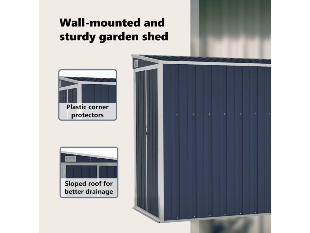 Tento nástenný záhradný domček je ideálny na uskladnenie rôznych predmetov, ako je náradie, záhradný nábytok, záhradné vybavenie atď. Domček ponúka ochranu pred nečistotami, prachom a tiež pred silným vetrom a počasím.
