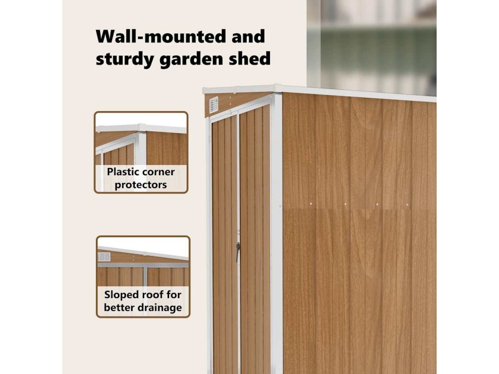 Tento nástenný záhradný domček je ideálny na uskladnenie rôznych predmetov, ako je náradie, záhradný nábytok, záhradné vybavenie atď. Domček ponúka ochranu pred nečistotami, prachom a tiež pred silným vetrom a počasím.