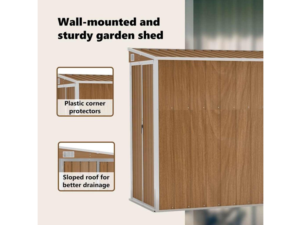 Tento nástenný záhradný domček je ideálny na uskladnenie rôznych predmetov, ako je náradie, záhradný nábytok, záhradné vybavenie atď. Domček ponúka ochranu pred nečistotami, prachom a tiež pred silným vetrom a počasím.