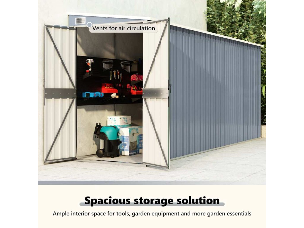 Táto nástenná záhradná kôlňa je ideálna na skladovanie najrôznejších predmetov, ako je náradie, záhradný nábytok, záhradné vybavenie, atď. Kôlňa ponúka ochranu pred nečistotami, prachom a tiež pred silným vetrom a nepriaznivými poveternostnými vplyvmi.