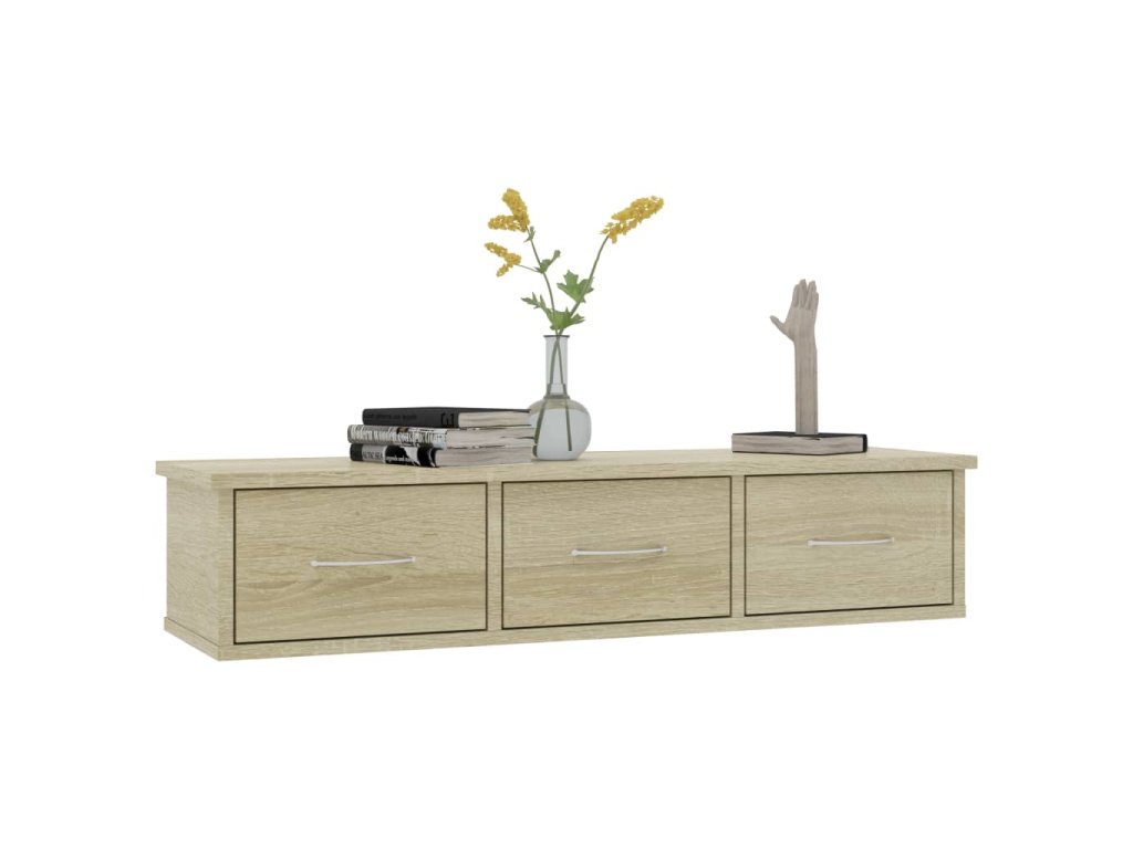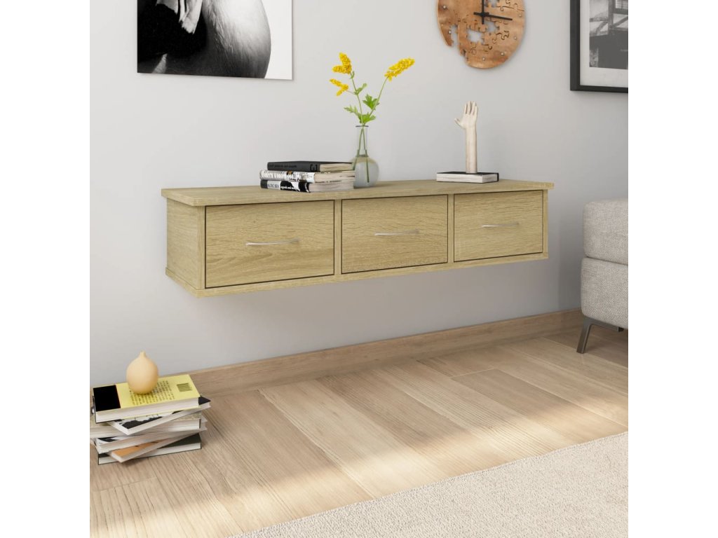 Táto plávajúca polica s 3 zásuvkami predstavuje ideálne úložné riešenie a riešenie na zobrazovanie predmetov v akejkoľvek domácnosti. Je univerzálna, a preto ju môžete umiestniť na chodbu na uloženie kľúčov, v obývacej izbe na zobrazenie fotografií a ozdobných predmetov; a tiež pod nástenným zrkadlom na vytvorenie priestoru na kozmetické potreby. Táto plávajúca polica je vyrobená z kvalitného kompozitného dreva, a je vyrobená tak, aby vydržala dlhé roky.