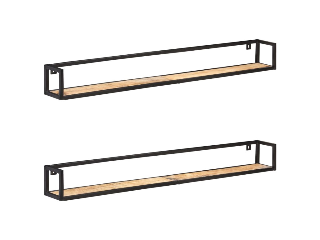 Táto sada nástenných políc je vyrobená zo surového mangovníkového dreva, ktoré sa môže pochváliť nielen pevnosťou, ktorá unesie veľkú hmotnosť, ale aj odolnosťou voči opotrebovaniu. Bude to ideálna voľba do každej miestnosti, kam potrebujete umiestniť predmety dennej potreby. Stabilitu zaisťuje čierny železný rám s práškovým povrchom. Každá nástenná polica má nosnosť 50 kg.