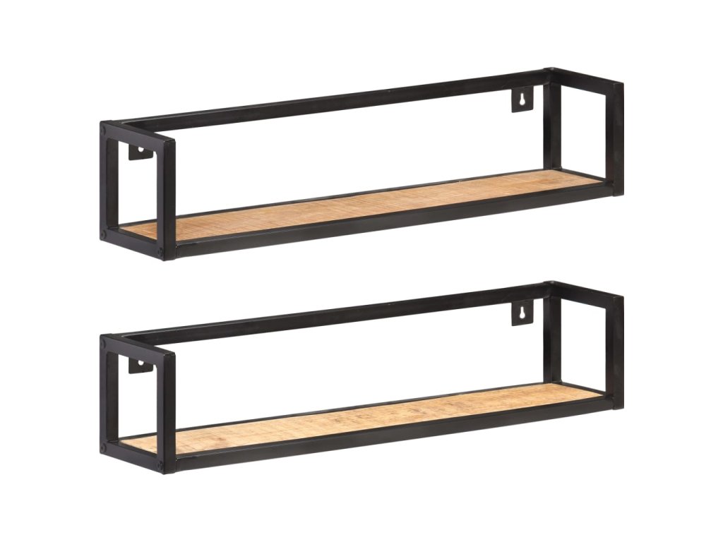 Táto sada nástenných políc je vyrobená zo surového mangovníkového dreva, ktoré sa môže pochváliť nielen pevnosťou, ktorá unesie veľkú hmotnosť, ale aj odolnosťou voči opotrebovaniu. Bude to ideálna voľba do každej miestnosti, kam potrebujete umiestniť predmety dennej potreby. Stabilitu zaisťuje čierny železný rám s práškovým povrchom. Každá nástenná polica má nosnosť 30 kg.