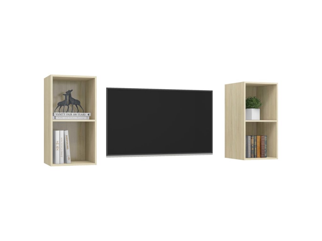 Táto sada 2 nástenných TV skriniek je vybavená veľkým úložným priestorom na usporiadanie rôznych predmetov a vo vašej domácnosti bude praktickým a pútavým doplnkom.