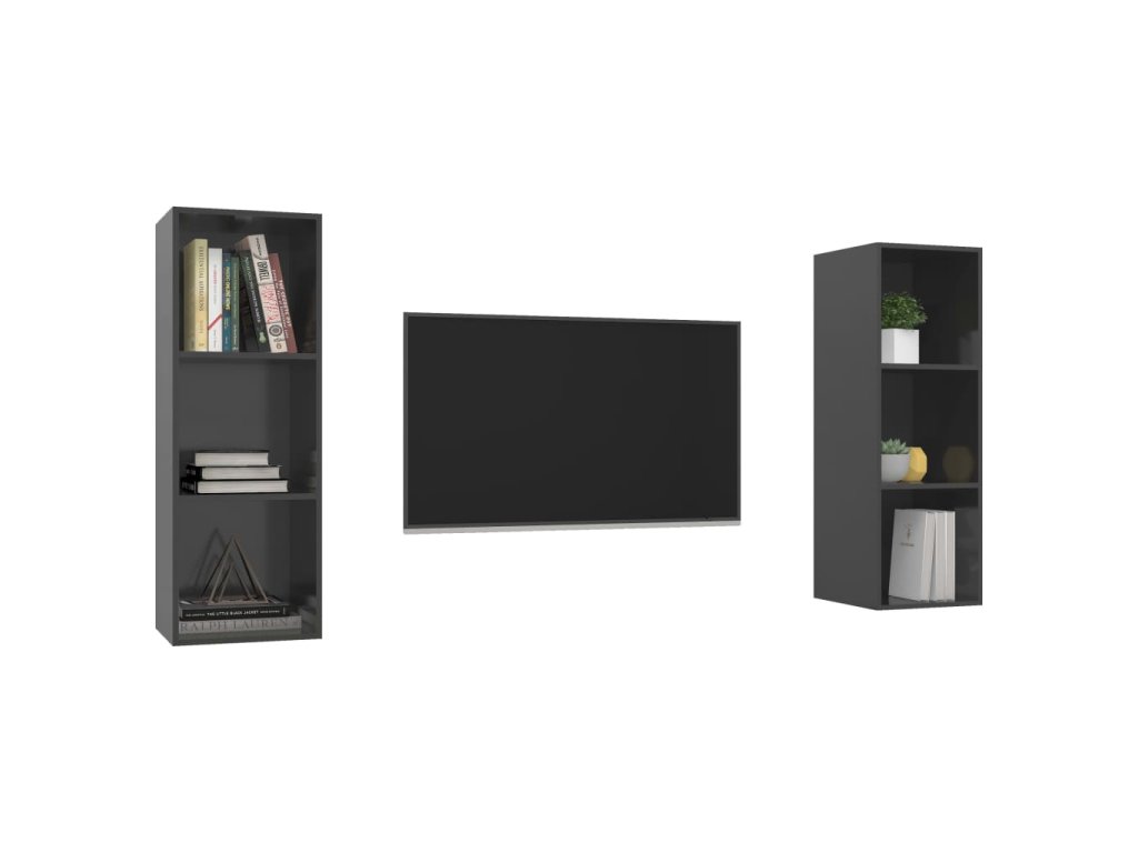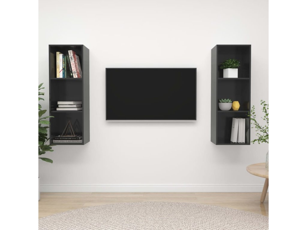 Táto sada nástenných TV skriniek je vybavená veľkým úložným priestorom na usporiadanie rôznych predmetov a vo vašej domácnosti vytvorí praktický a pútavý doplnok.