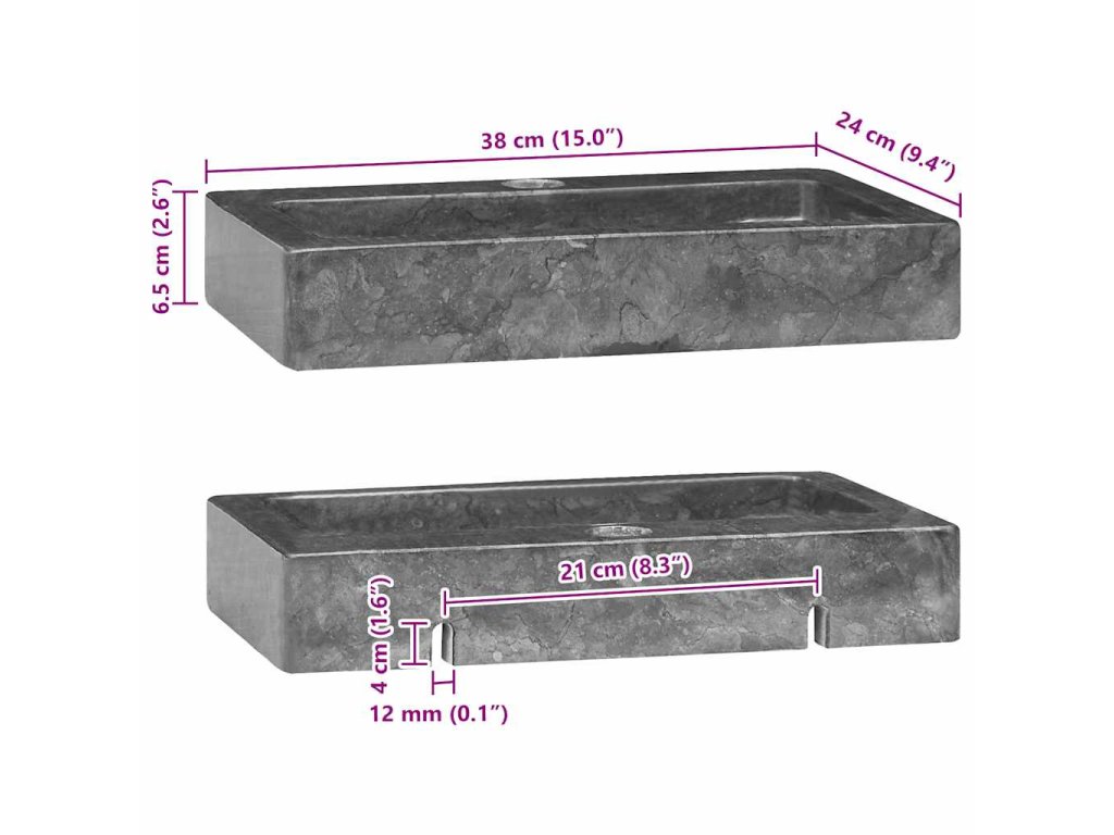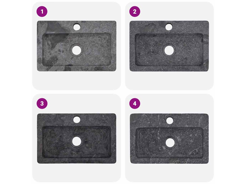 Poznámka: Mramor je prírodný materiál, a preto sa farba jednotlivých výrobkov môže líšiť. Vďaka sivému mramoru môže byť výrobok v skutočnosti o niečo svetlejší alebo tmavší než na fotografiách a niekedy sa na ňom môže vyskytovať viacero farieb. Príklady skutočnej farby produktu nájdete na poslednom obrázku.