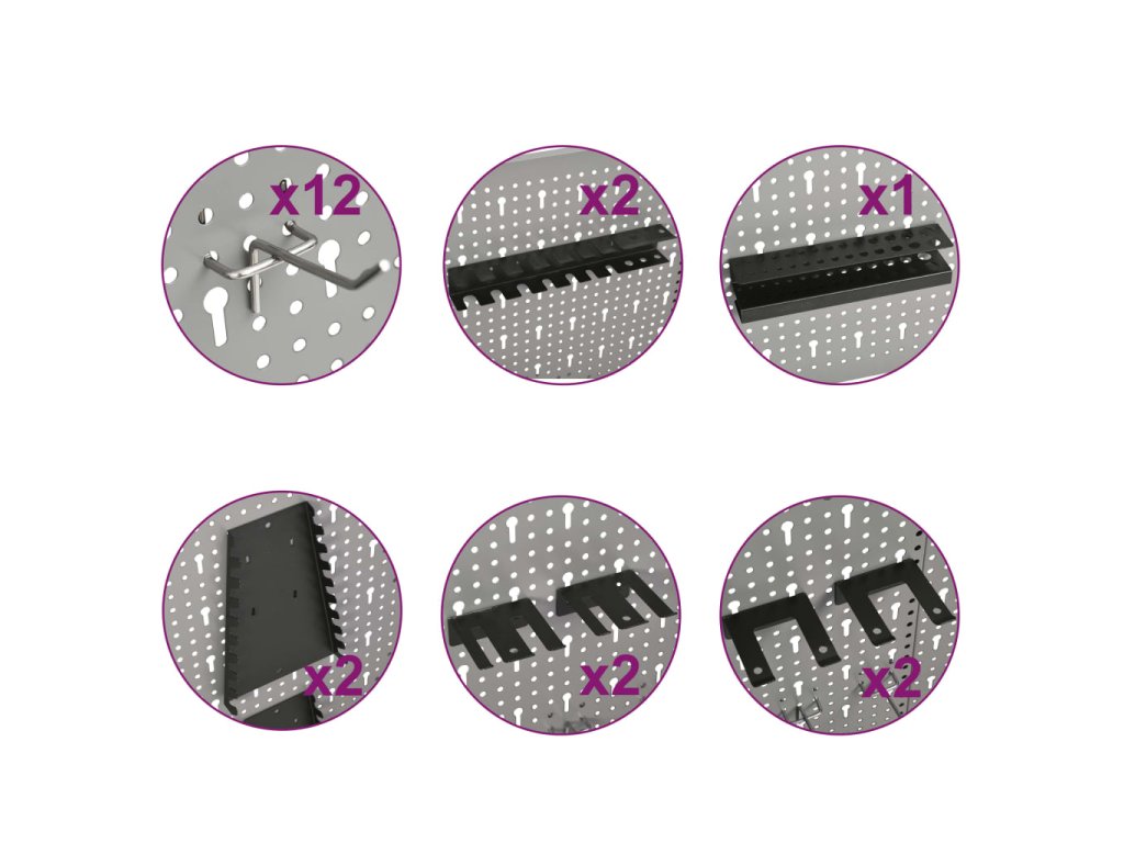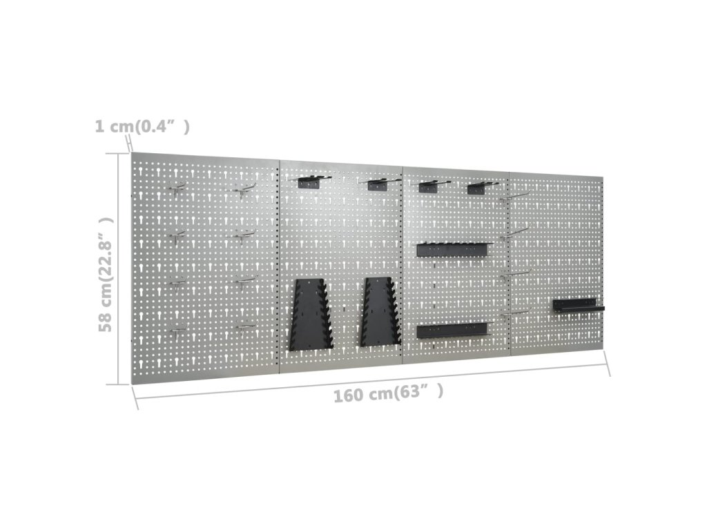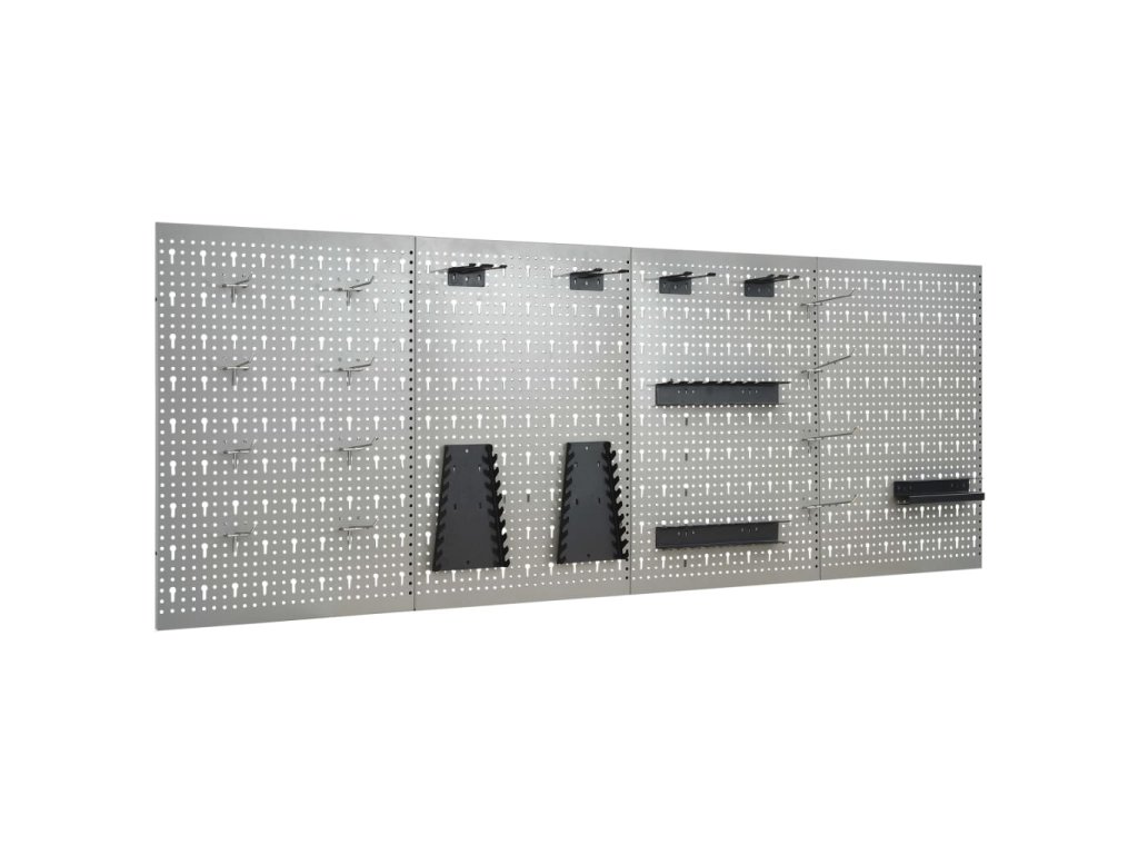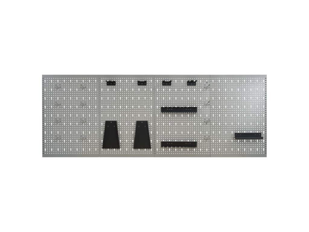 Tieto panely na nástroje sú vyrobené z pevnej ocele a dokážu uniesť váhu rôznych nástrojov, ako sú vrtáky, kliešte, skrutkovače a kľúče. Panely sú perforované pre ľahké a bezpečné pripevnenie náradia. Štyri nástenné panely sa dajú k sebe uchytiť pre vyššiu pevnosť. Je to ideálny doplnok pre vaše pracovné stoly a dielenské skrinky s praktickou šírkou 160 cm.