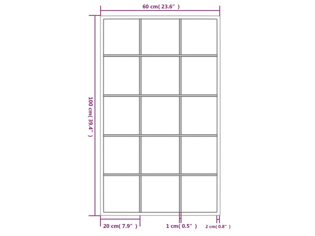 - Tento produkt obsahuje 6 zrkadiel (100 x 60 cm), ktoré je možné zavesiť vedľa seba na vytvorenie celkovej veľkosti 200 x 180 cm.