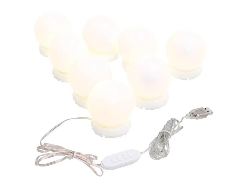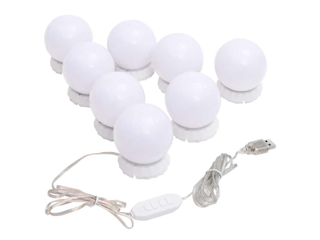 Zrkadlový okraj je brúsený, aby pôsobil čistým dojmom. Môžete si kúpiť aj viacero zrkadiel a usporiadať ich do dekoratívneho vzoru. Nalepovacie svetlo na kozmetické zrkadlo má rôzne farebné režimy, ktoré budú vyhovovať vašim potrebám podľa situácie. Vďaka voľnej vzdialenosti medzi dvoma svetlami možno dodatočný kábel skryť omotaním drôtu okolo spodnej časti žiarovky, aby ste dosiahli čo najlepší DIY efekt a udržali zrkadlo čisté a bezproblémové.