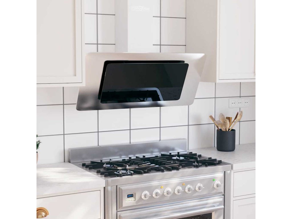 - Prémiový materiál: Odsávač pár je vybavený krytom z nehrdzavejúcej ocele s elegantným panelom z tvrdeného skla, ktorý dodá vašej kuchyni štýlový a moderný vzhľad.