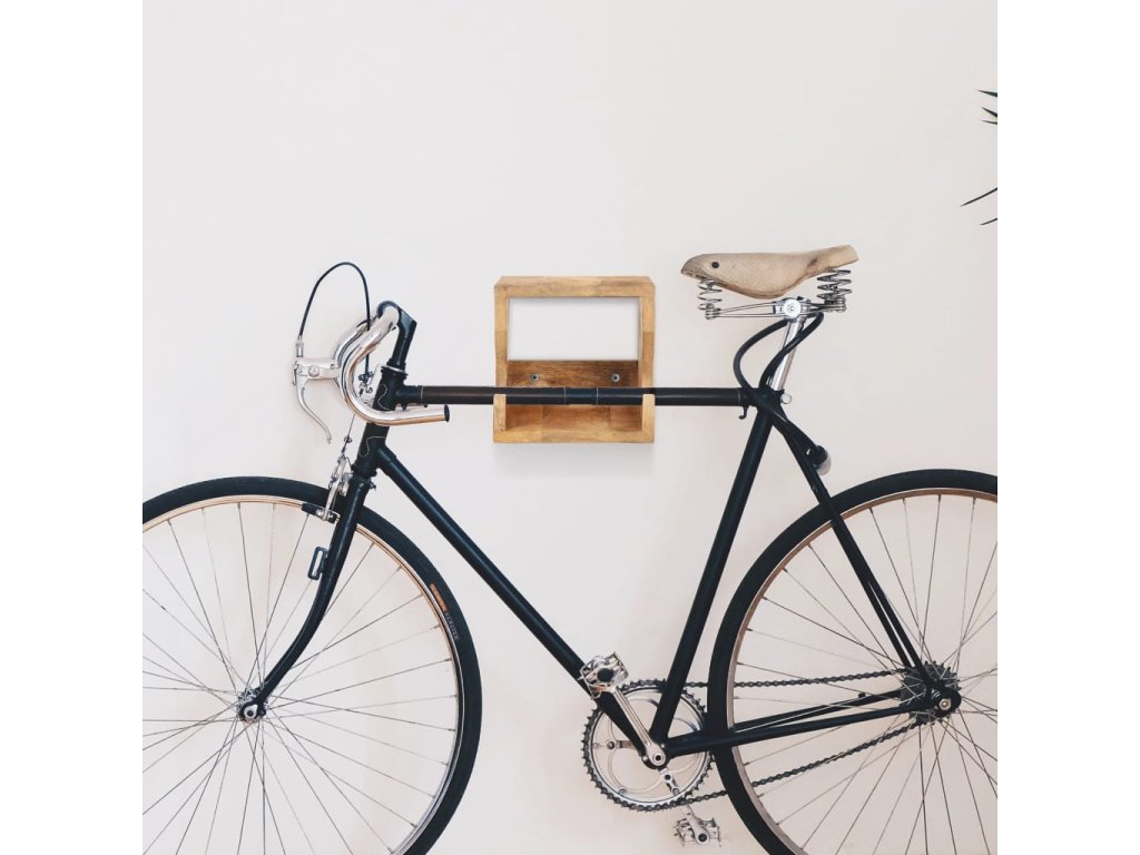 Tento priestorovo úsporný držiak bicykla je vyrobený zo surového mangovníkového dreva. Dá sa pripevniť na stenu a zavesiť tak bicykle za rovnú tyč. Masívne mangovníkové drevo je tropické tvrdé drevo. Má silu uniesť aj vyššiu hmotnosť a odolá opotrebovaniu. Vďaka vynikajúcemu remeselnému spracovaniu a nádhernej štruktúre dreva sa každý kúsok od seba mierne líši. Stojan na bicykle pomáha usporiadať priestor a dá sa použiť v obchodoch s bicyklami, garážach, kôlňach alebo na balkóne.
