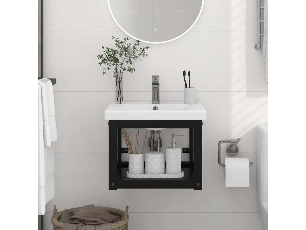Rám je vyrobený zo železa s práškovým nástrekom, je odolný voči poveternostným vplyvom a je tiež trvácny. Rám na umývadlo umožňuje ľahký prístup k uterákom a košíkom, a vytvára väčší priestor ako uzavretý úložný priestor. Tento nábytok do kúpeľne sa ľahko čistí vlhkou handričkou.