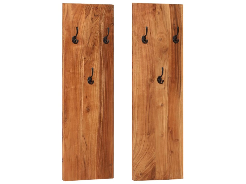 Vešiaky sú vyrobené z masívneho akáciového dreva a sú veľmi stabilné a odolné. Vďaka remeselnému spracovaniu a krásnej štruktúre dreva je každý kus nábytku jedinečný a mierne odlišný od ostatných kusov. Každý krok výrobného procesu sa vykonáva s najväčšou starostlivosťou, či už ide o leštenie, natieranie alebo lakovanie. Každý vešiak je vybavený 3 háčikmi na zavesenie tašiek, kabátov, dáždnikov, príveskov, kľúčov a podobne, čím výrazne ušetríte miesto v izbe. Súpravu je možné jednoducho namontovať na stenu.