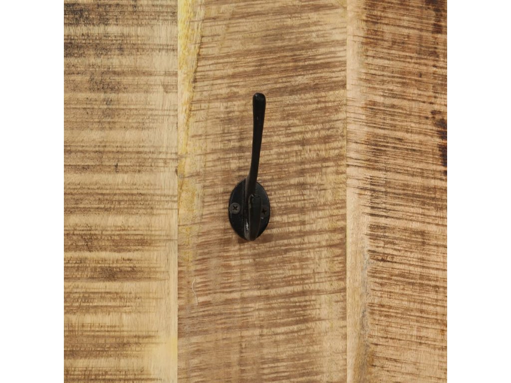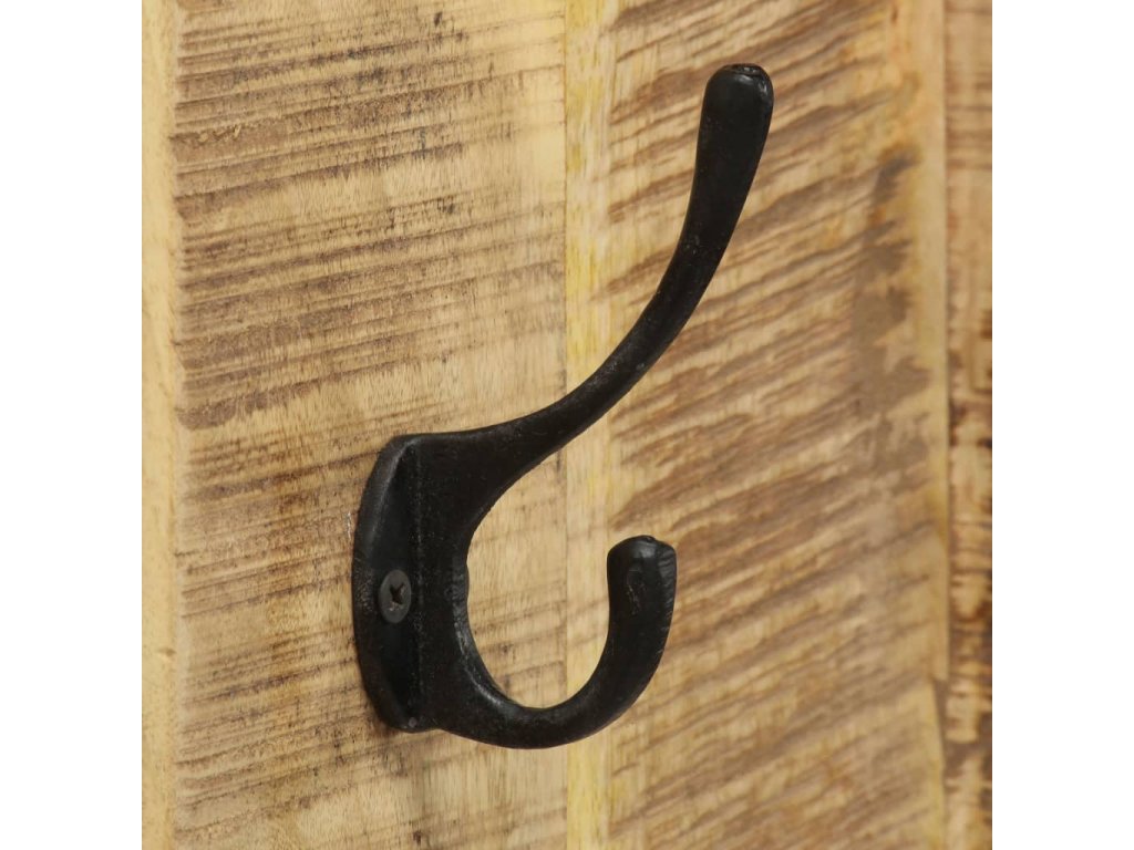 Sada vešiakov bude ideálnym miestom na zavesenie kabátov, klobúkov, tašiek, šálov, atď. Vešiaky sú vyrobené z masívneho mangovníkového dreva a sú veľmi stabilné a trvácne. Mangovníkové drevo je pevné a husté tvrdé drevo, ktoré má na svojom povrchu krásne hnedé alebo zlaté pruhy a kontúry. Remeselné spracovanie mu dodáva retro štýl. Každý krok výrobného procesu sa vykonáva s maximálnou starostlivosťou, či už je to leštenie, natieranie alebo lakovanie. Sada sa dá ľahko namontovať na stenu. Balenie obsahuje 2 vešiaky.