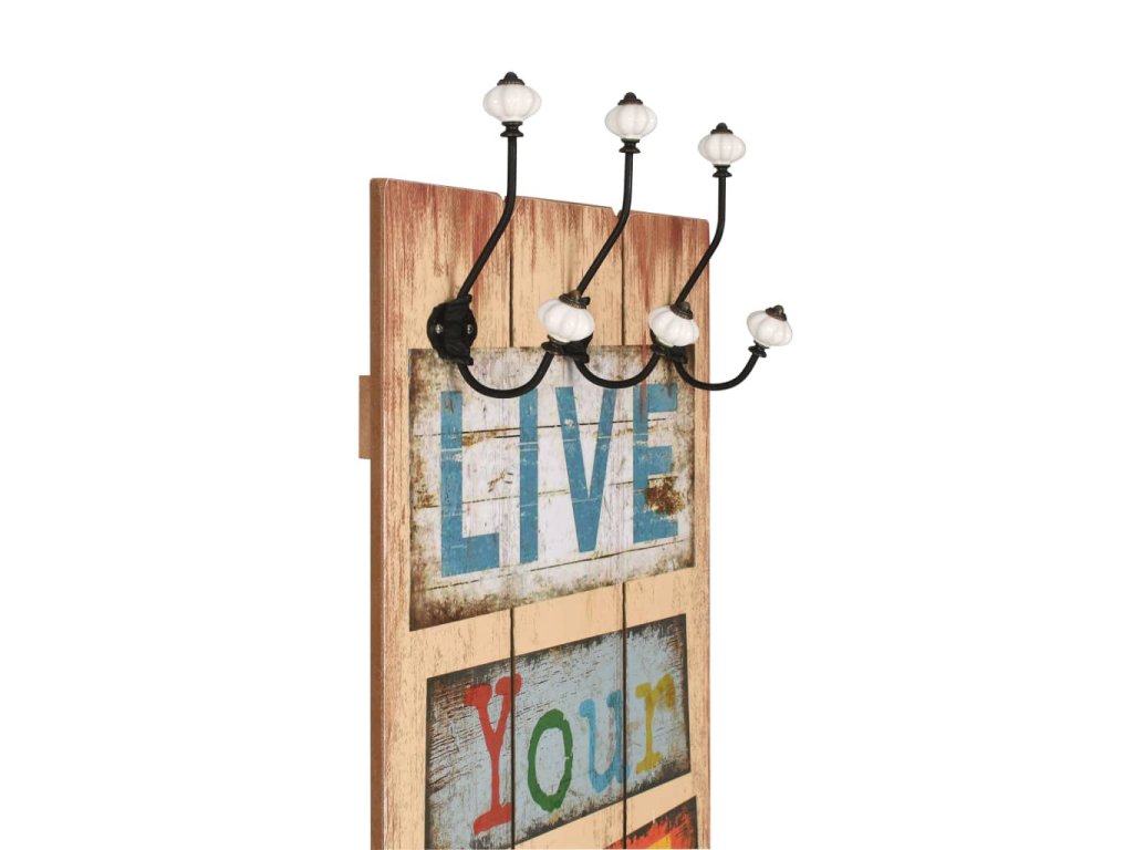 Vďaka svojmu štýlovému vintage nápisu "Live your life in the moment" sa tento nástenný vešiak so 6 háčikmi stane skutočne pútavým doplnkom, ktorý si vaši hostia okamžite všimnú.