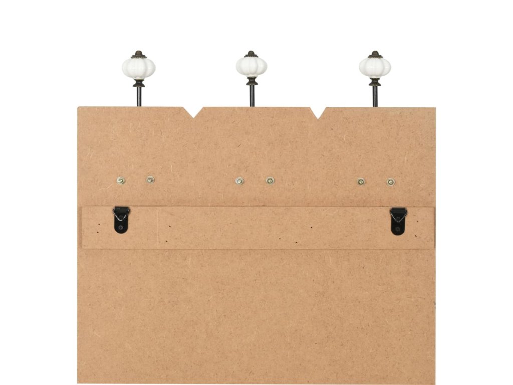 Vešiak na kabáty je vyrobený z MDF dosky, ktorá je veľmi pevná. Nachádzajú sa na ňom dva rady s troma nádhernými kovovými háčikmi. Vešiak na kabáty poskytuje dostatok priestoru na zavesenie kabátov, tašiek, šálov, čiapok či rôznych drobností. Vešiak sa dá jednoducho namontovať na stenu pomocou dvoch upevňovacích bodov na zadnej strane. Montáž je jednoduchá.
