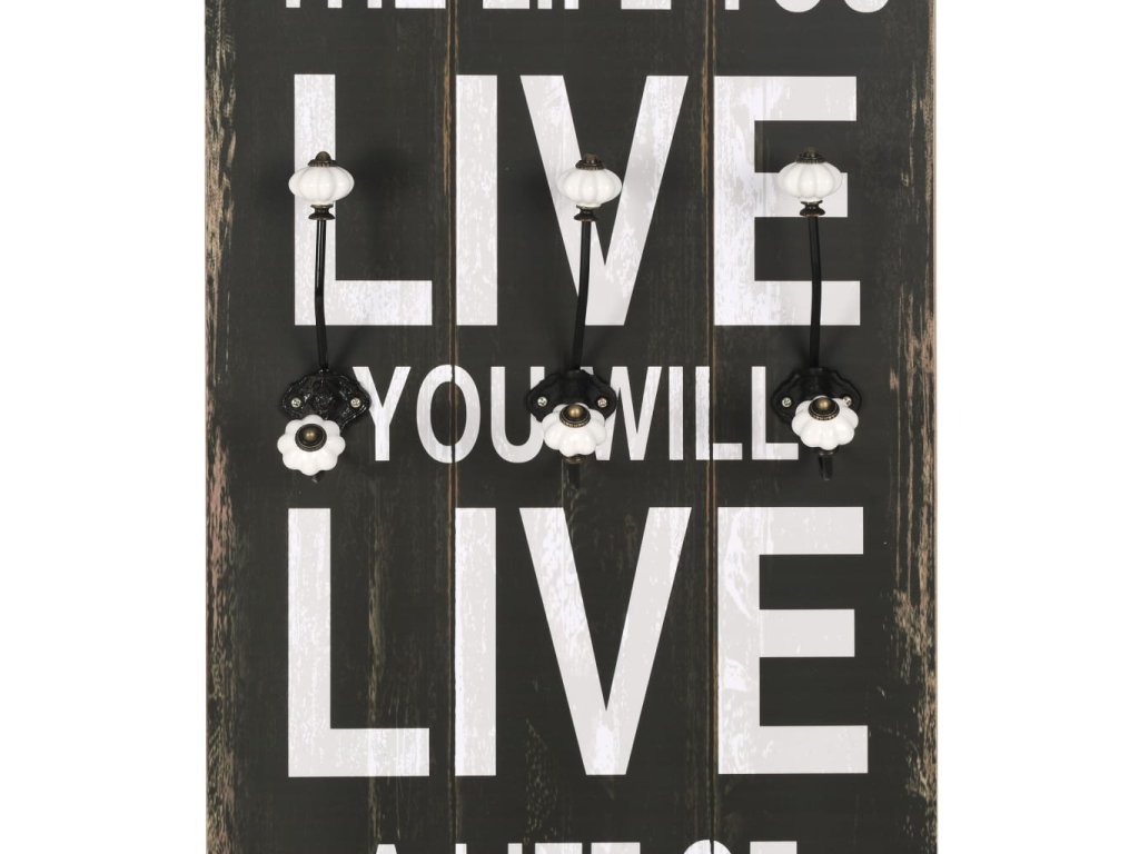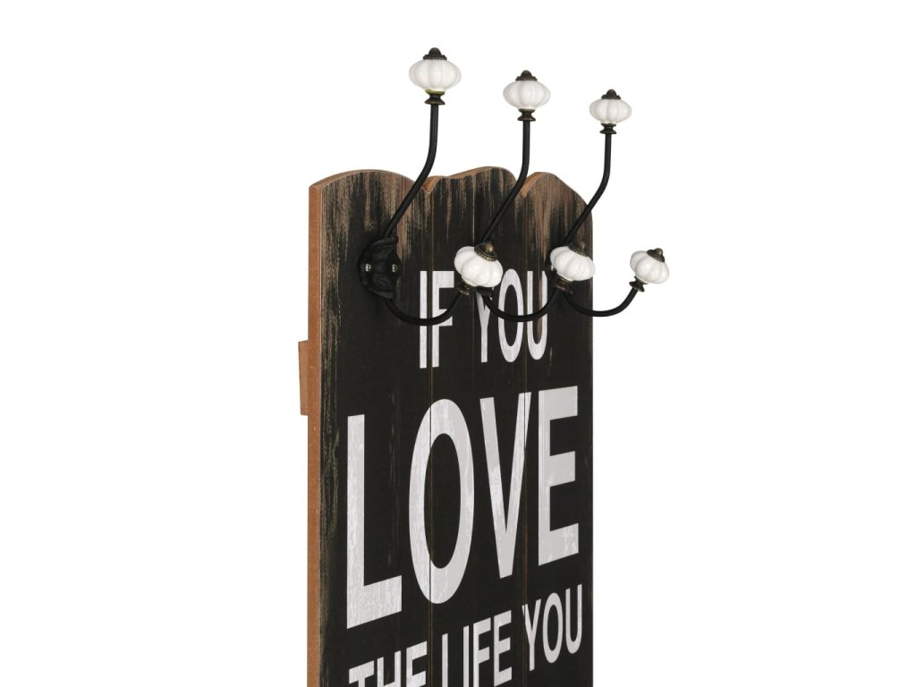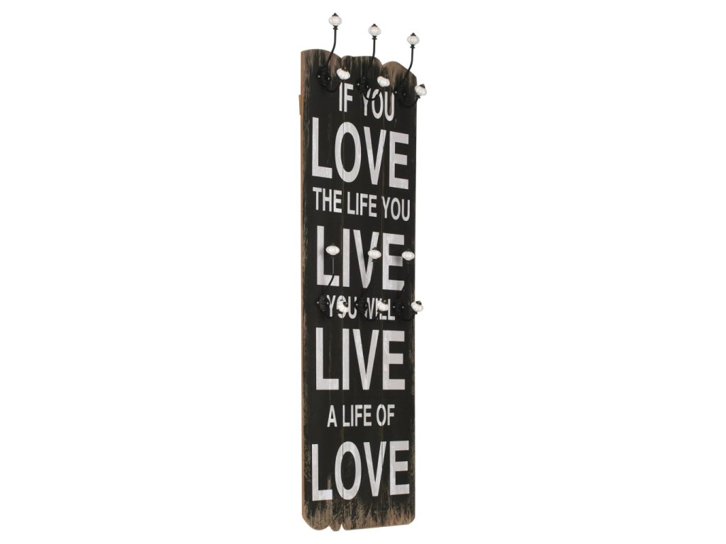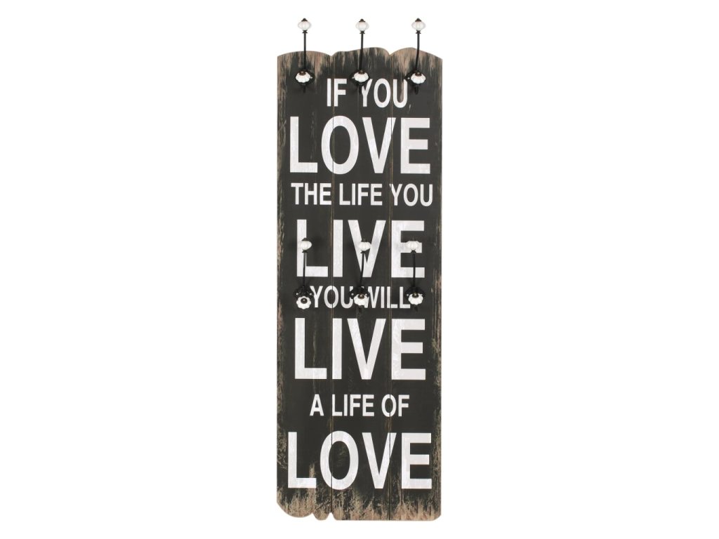 Vďaka svojmu štýlovému vintage nápisu "If you love the life you live you will live a life of love" sa tento nástenný vešiak so 6 háčikmi stane skutočne pútavým doplnkom, ktorý si vaši hostia okamžite všimnú.