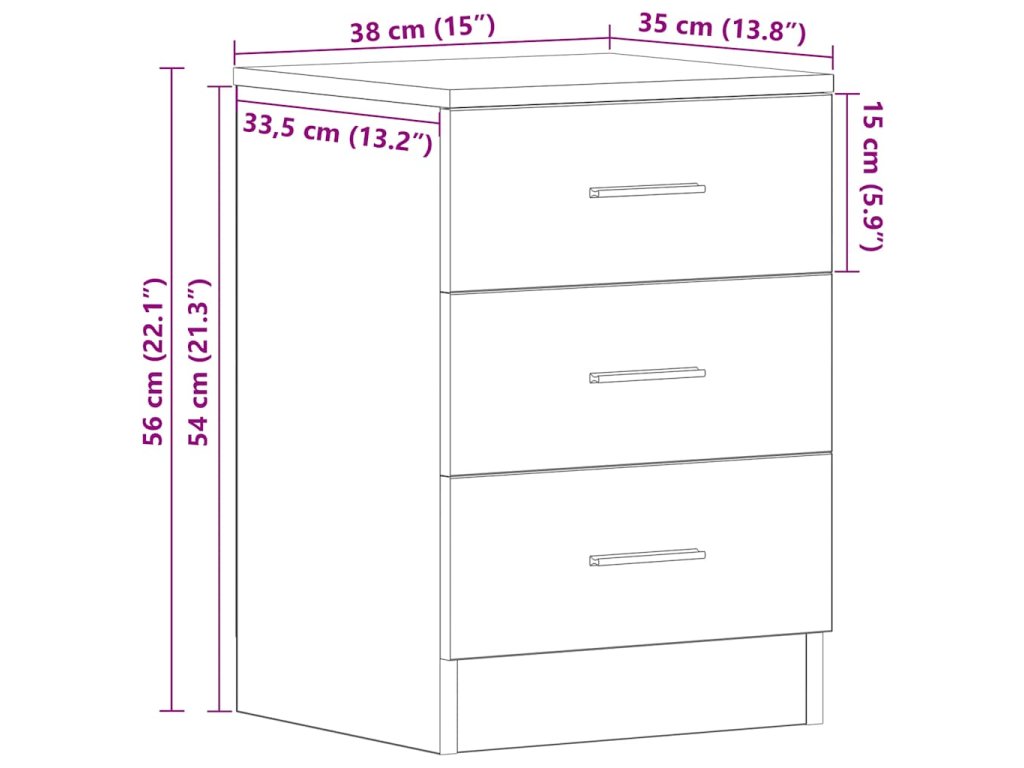 Nočný stolík je vyrobený z kvalitného kompozitného dreva, vďaka čomu je robustný, trvácny a všestranný. Predstavuje univerzálnu skrinku do rôznych miestností, a preto ho môžete využívať napríklad aj v obývačke ako stolík ku gauču. Tri zásuvky poskytujú množstvo priestoru na prehľadné odkladanie časopisov, kníh, ovládačov a iných drobností, ktoré chcete mať vždy poruke. Nočný stolík sa navyše dá ľahko očistiť navlhčenou handričkou.