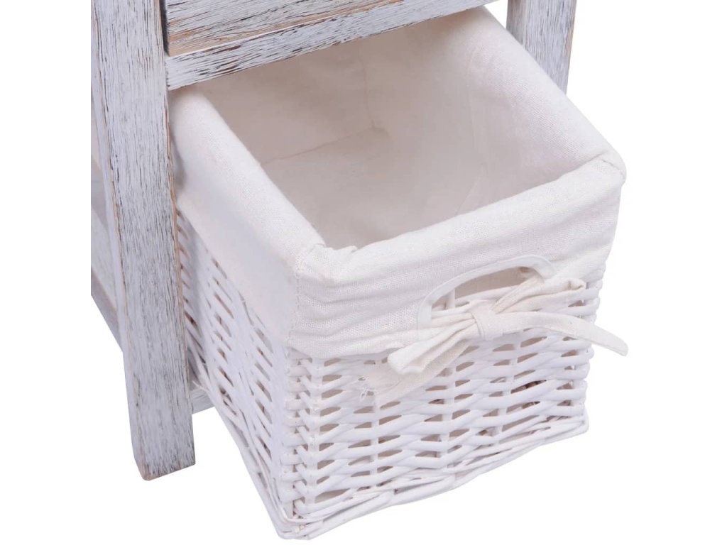 Obidve kompaktné skrinky majú zásuvku, ktorá sa ľahko vysúva a zasúva a poskytuje dostatok miesta na odkladanie drobností, ktoré chcete mať vždy poruke. Pod zásuvkou sa nachádza odnímateľný prútený košík, ktorý ponúka dodatočný úložný priestor. Látkova výstelka košíka sa dá vybrať a oprať.
