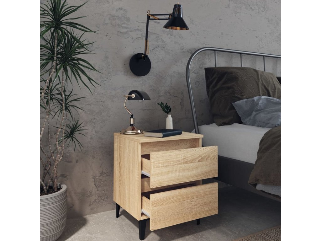 Tento nočný stolík so štyrmi kovovými nohami je stabilný a robustný. Nočný stolík do spálne je navyše vybavený dvoma zásuvkami, ktoré ponúkajú dostatok úložného priestoru na uloženie a organizáciu vecí. Ľahko sa čistí vlhkou handričkou.