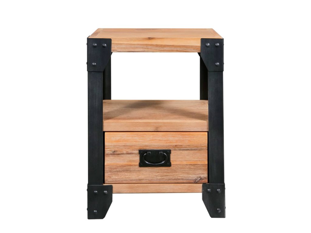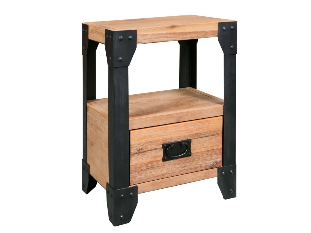 Nočný stolík má pevnú vrchnú dosku, ktorá je ideálna na položenie budíka, lampy na čítanie, kníh alebo na zobrazovanie rámčekov s fotografiami alebo iných dekoratívnych predmetov. Zásuvka a polička poskytujú priestor na uloženie všetkých menších predmetov, ktoré potrebujete mať na dosah ruky. Praktické úchytky uľahčujú otvorenie zásuvky a dodávajú nočným stolíkom priemyselný štýl.
