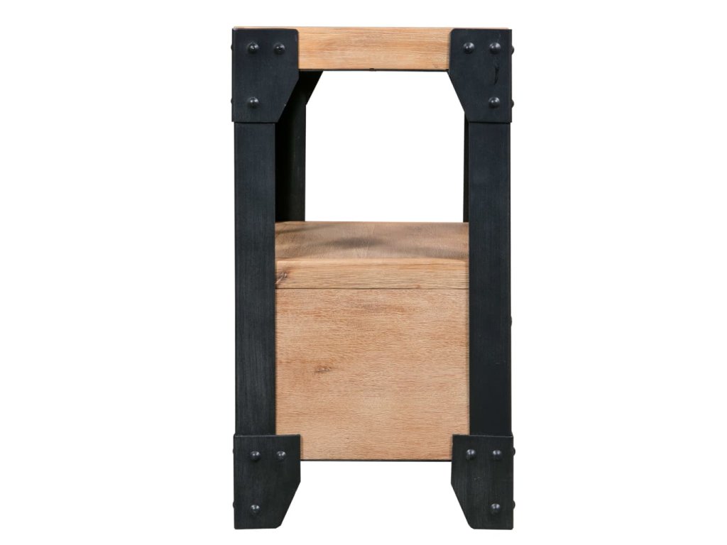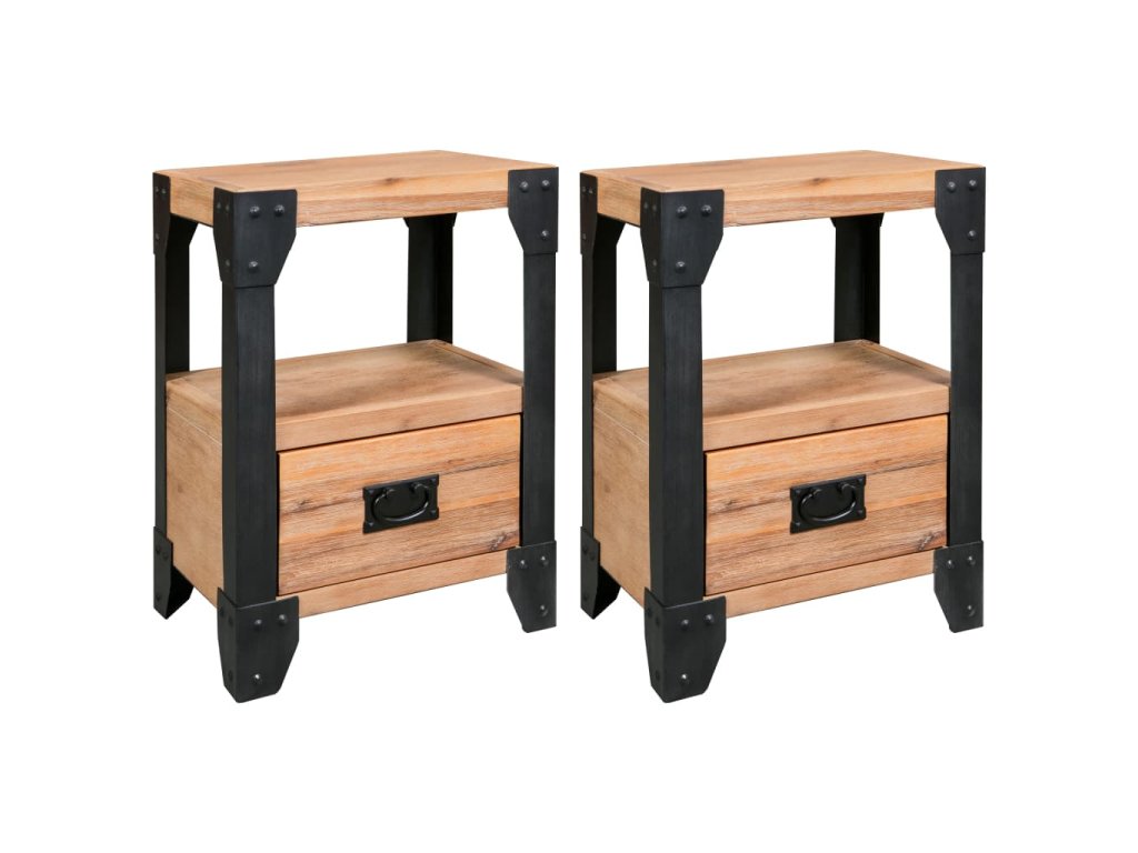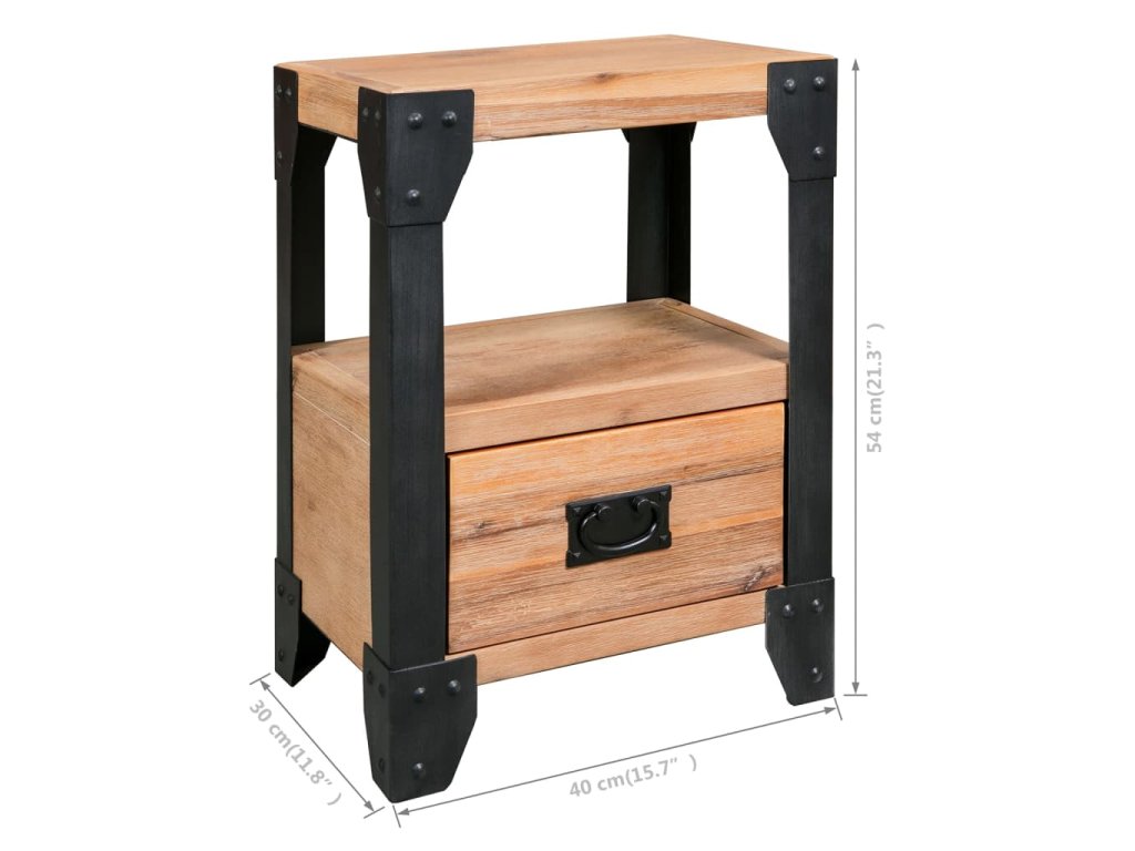 Tento štýlový nočný stolík v industriálnom prevedení bude skvelou súčasťou vašej spálne. Je vyrobený z vysokokvalitného, lešteného masívneho akáciového dreva s čiernymi oceľovými detailmi pre vytvorenie vzhľadu, ktorý dodáva posteli priemyselný štýl, ktorý je práve teraz v móde.