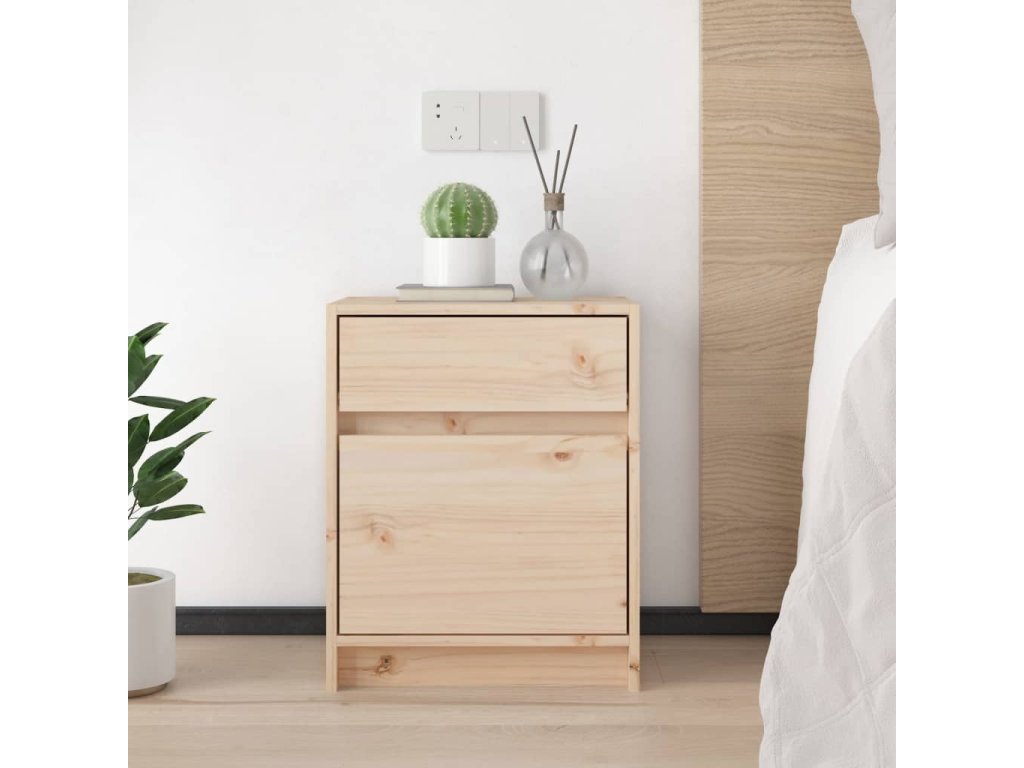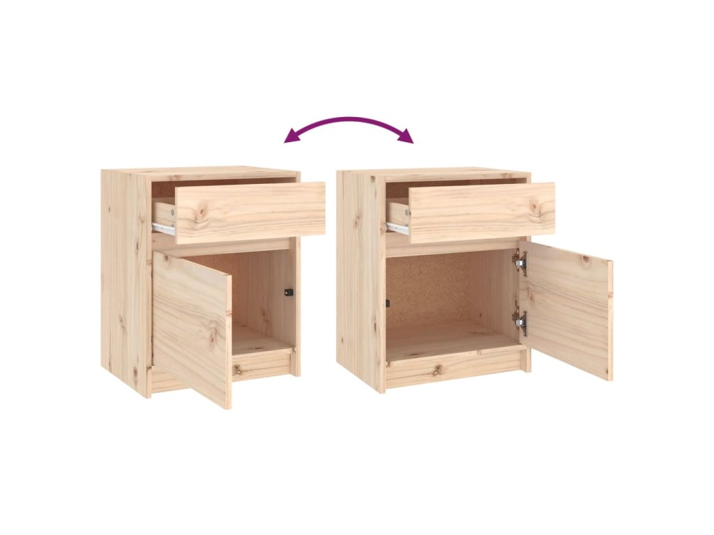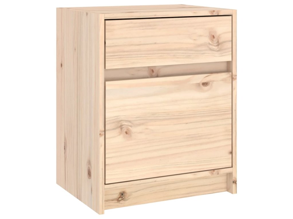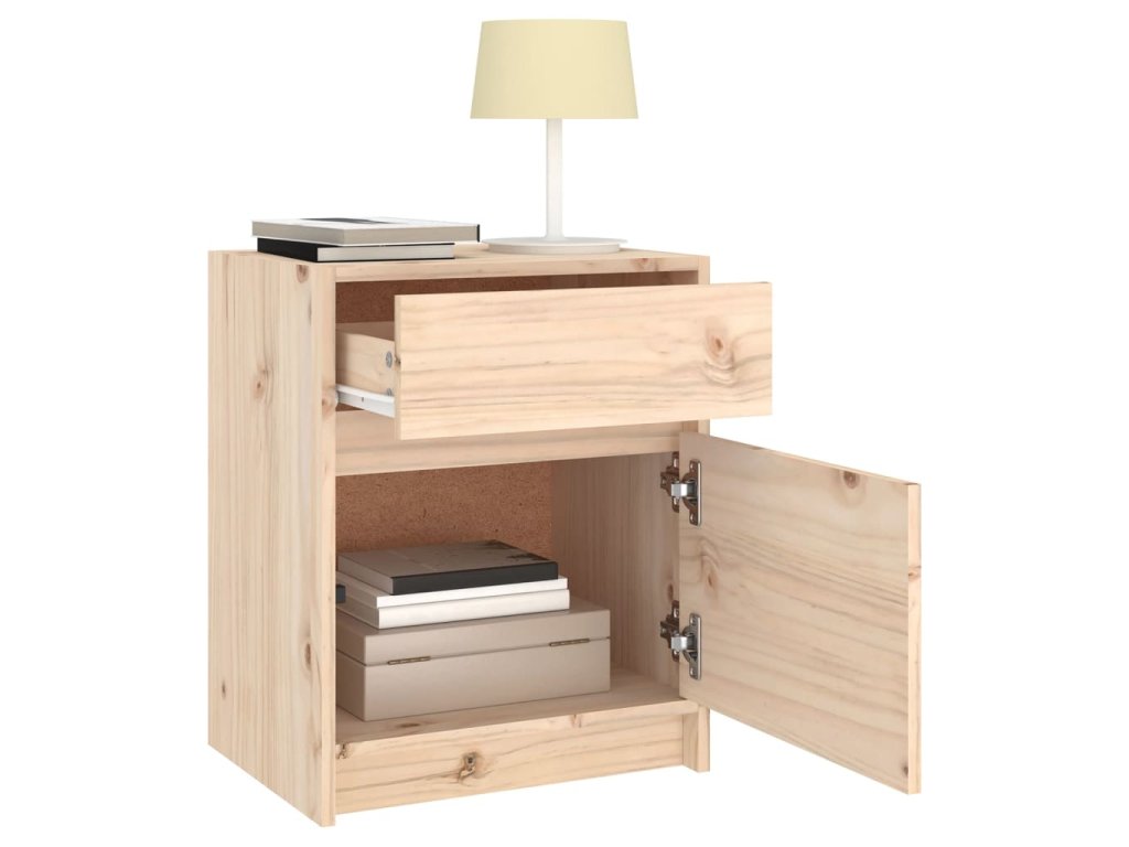 Nočný stolík je vyrobený z masívneho borovicového dreva, vďaka čomu je pevný a stabilný. Má silu uniesť aj vyššiu hmotnosť a je trvácny. Vďaka vynikajúcemu remeselnému spracovaniu a krásnej štruktúre dreva sa každý kus mierne líši od ostatných kusov. Okrem toho má nočný stolík dostatok úložného priestoru, aby ste mali svoje dôležité veci usporiadané a na dosah ruky.