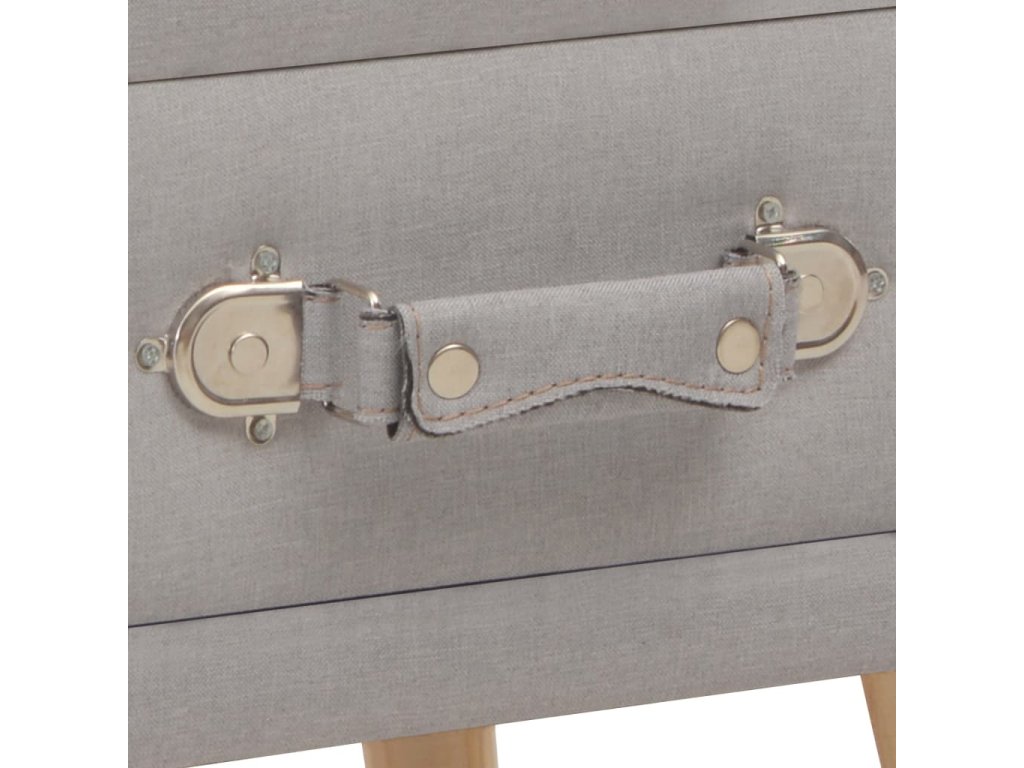 Nočný stolík bol odborne vyrobený z látky a masívneho borovicového dreva, vďaka čomu je veľmi trvácny a robustný. Kompaktná látková skrinka má zásuvku, ktorá sa hladko vysúva a poskytuje dostatočný priestor na uloženie menších predmetov, ktoré potrebujete mať na dosah ruky. Okrem toho sa dá použiť aj ako stojan k posteli, nočná skrinka, zásuvková skrinka a podobne. Nočný stolík sa jednoducho montuje.