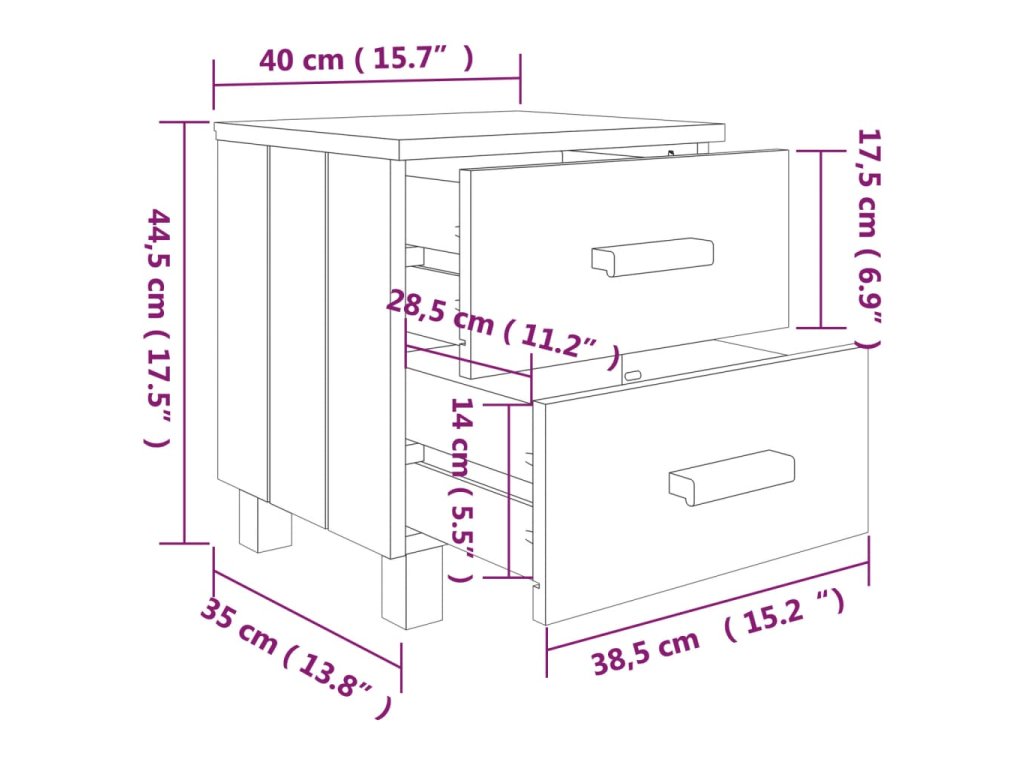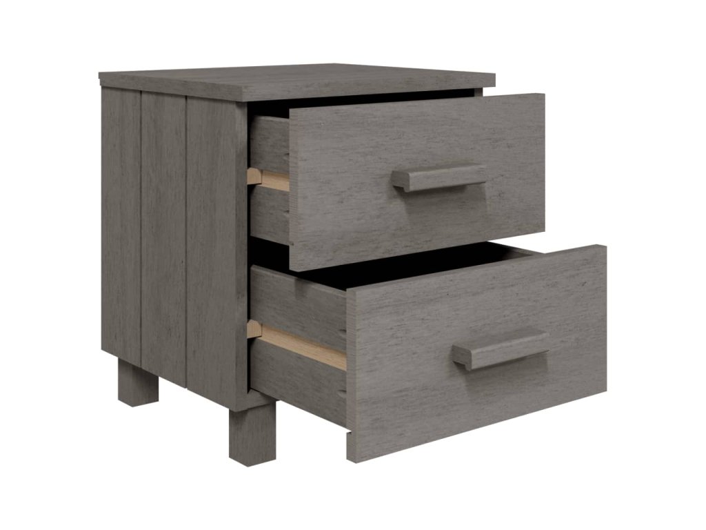 Nočný stolík je vyrobený z borovicového masívu, vďaka čomu je stabilný a pevný. Nočný stolík má dve zásuvky, ktoré sa ľahko vysúvajú a poskytujú množstvo priestoru na prehľadné odkladanie časopisov, kníh, ovládačov a ďalších drobností, ktoré tak budete mať vždy poruke. Robustná stolová doska je ako stvorená na vystavenie dekoratívnych predmetov.