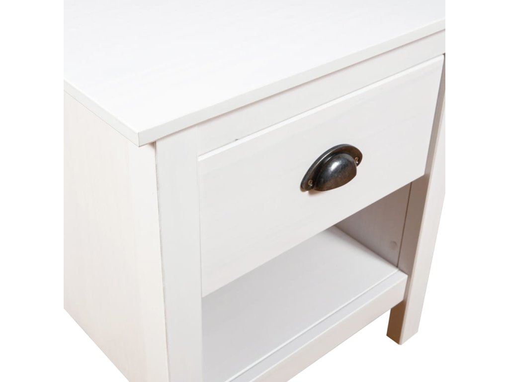 Univerzálne použiteľnú skrinku k posteli môžete použiť aj ako telefónny stolík alebo príručný stolík v obývacej izbe. Nočný stolík je vyrobený z masívneho borovicového dreva a je veľmi stabilný a odolný. Jeho pevná vrchná doka je ideálna na umiestnenie dekoratívnych predmetov, ako sú vázy alebo rastliny v črepníkoch. Drevený nočný stolík je vybavený 1 zásuvkou a 1 poličkou a poskytuje dostatok úložného priestoru na dokonalé usporiadanie rôznych vecí. Tento nočný stolík sa navyše ľahko čistí vlhkou handričkou.