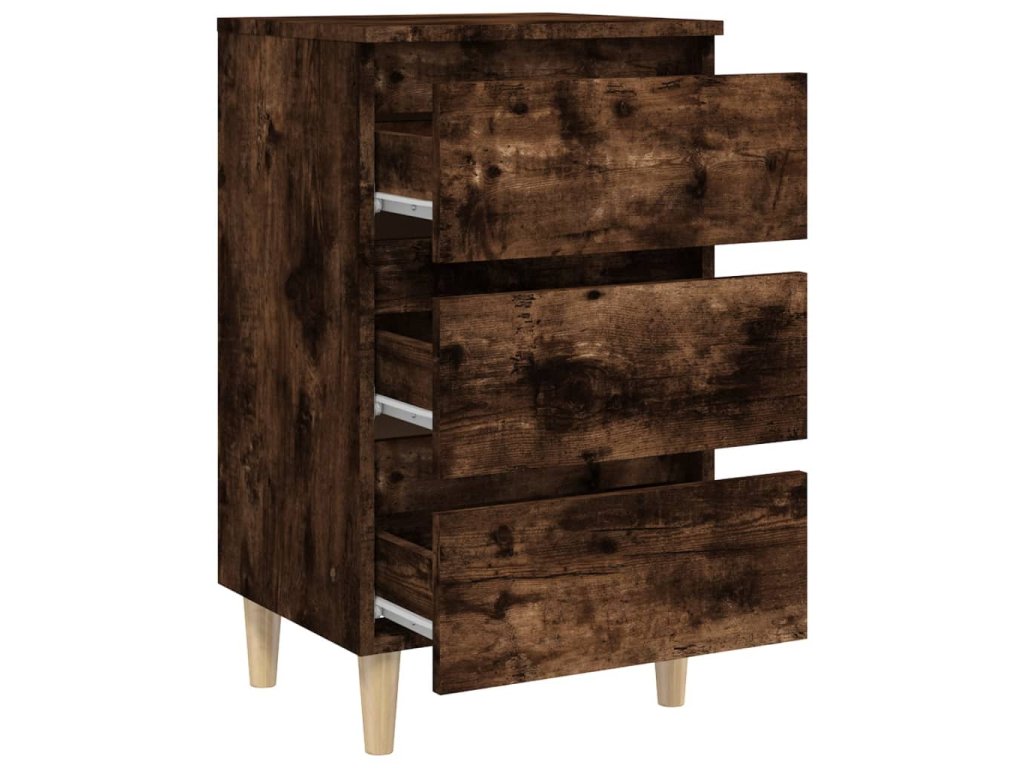 Tento nočný stolík so štyrmi drevenými nohami je stabilný a robustný. Nočný stolík do spálne je navyše vybavený troma zásuvkami, ktoré ponúkajú dostatok úložného priestoru na uloženie a organizáciu vecí. Ľahko sa čistí vlhkou handričkou.