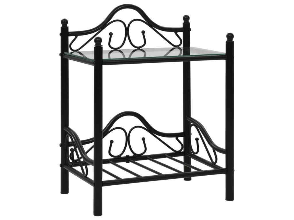 Tento nočný stolík sa skladá z pevného oceľového rámu a tvrdeného skla a je stabilný a odolný. Stolík má 2 police, ktoré sú ideálne na umiestnenie rôznych drobností. Zakrivená oceľová konštrukcia prispieva k elegantnému štýlu nočného stolíka. Tento nočný stolík sa jednoducho montuje.