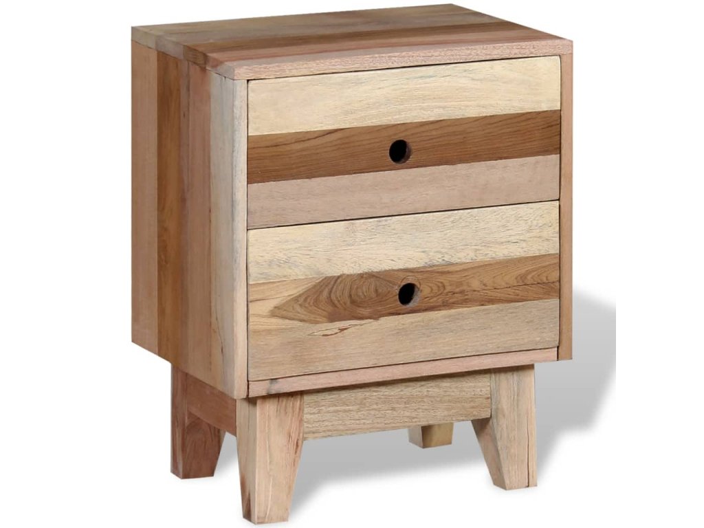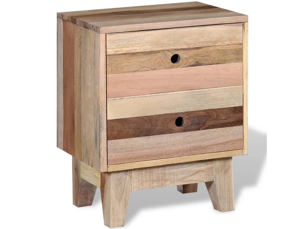 Drevený nočný stolík vo vintage štýle je vyrobený z recyklovaného masívu a predstavuje nadčasový doplnok do domácnosti. Má 2 zásuvky na odkladanie menších predmetov, ktoré tak budete mať vždy poruke. Nočný stolík môžete využívať aj ako príručnú skrinku alebo stolík na telefón.