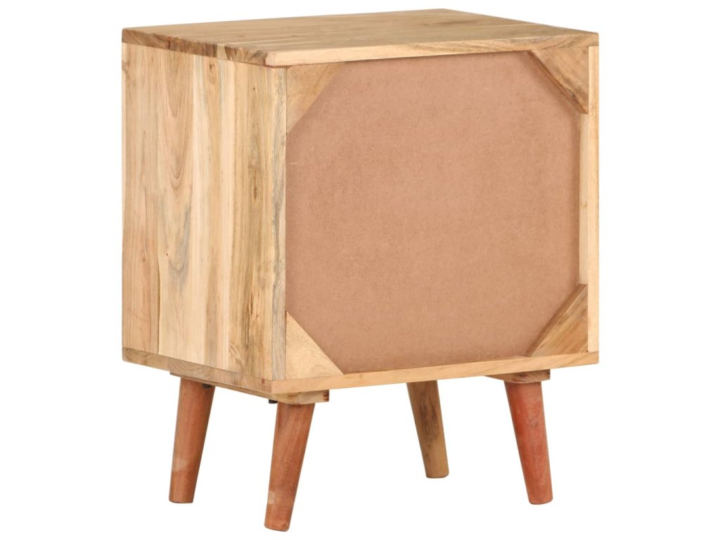 Nočný stolík je vyrobený z masívneho akáciového dreva, tropického tvrdého dreva, ktoré je odolné voči poveternostným vplyvom a veľmi trvácne. Drevená skrinka je vybavená dostatočným úložným priestorom, takže do nej môžete uložiť všetky predmety, ktoré sa vám páčia.