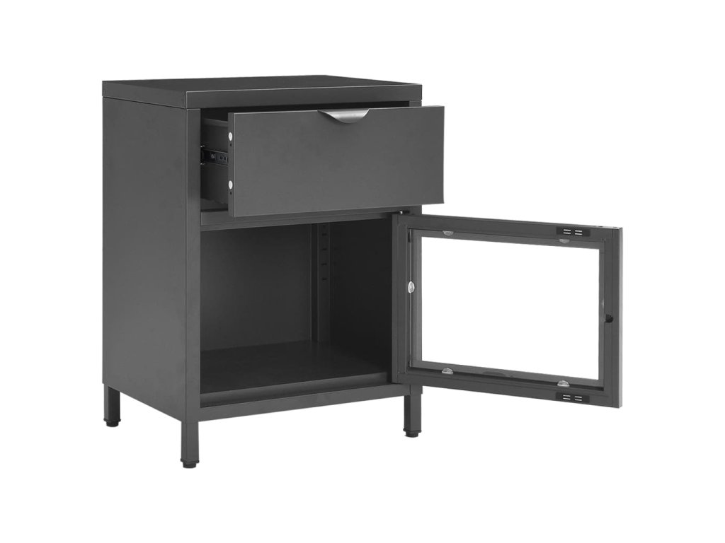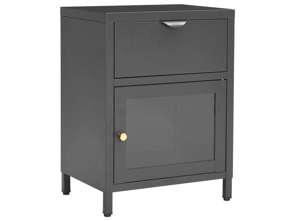 Nočný stolík je vyrobený z ocele a tvrdeného skla, takže je odolný a ľahko sa čistí. Stolík má 1 zásuvku, ktorá poskytuje dostatok úložného priestoru na usporiadanie vašich kníh a drobných predmetov na dosah ruky. Zásuvka s 3 sekciami s guľôčkovými ložiskami zabezpečuje hladké otváranie a zatváranie.