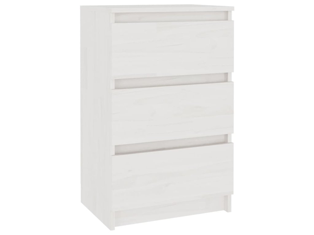 Tento nočný stolík je vyrobený z masívneho borovicového dreva, čo zaisťuje jeho pevnosť, odolnosť a dlhú životnosť. Tri zásuvky poskytujú dostatok úložného priestoru, aby ste mali svoje drobnosti dobre usporiadané a na dosah ruky. Táto posteľná skrinka sa navyše ľahko čistí vlhkou handričkou.