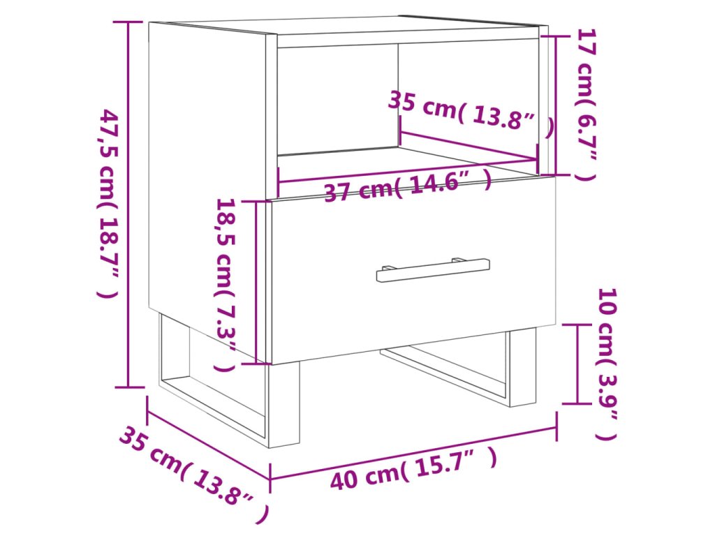 - Priestranný úložný priestor: Nočná skrinka má priečinky a zásuvku, ktoré poskytujú veľký úložný priestor, aby ste mali svoje knihy, multimediálne zariadenia a iné predmety na dosah ruky.