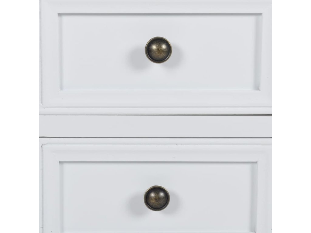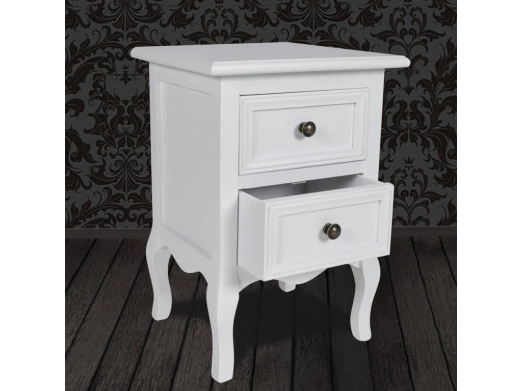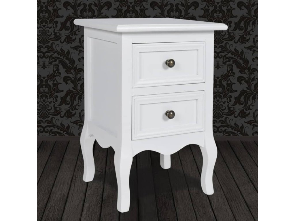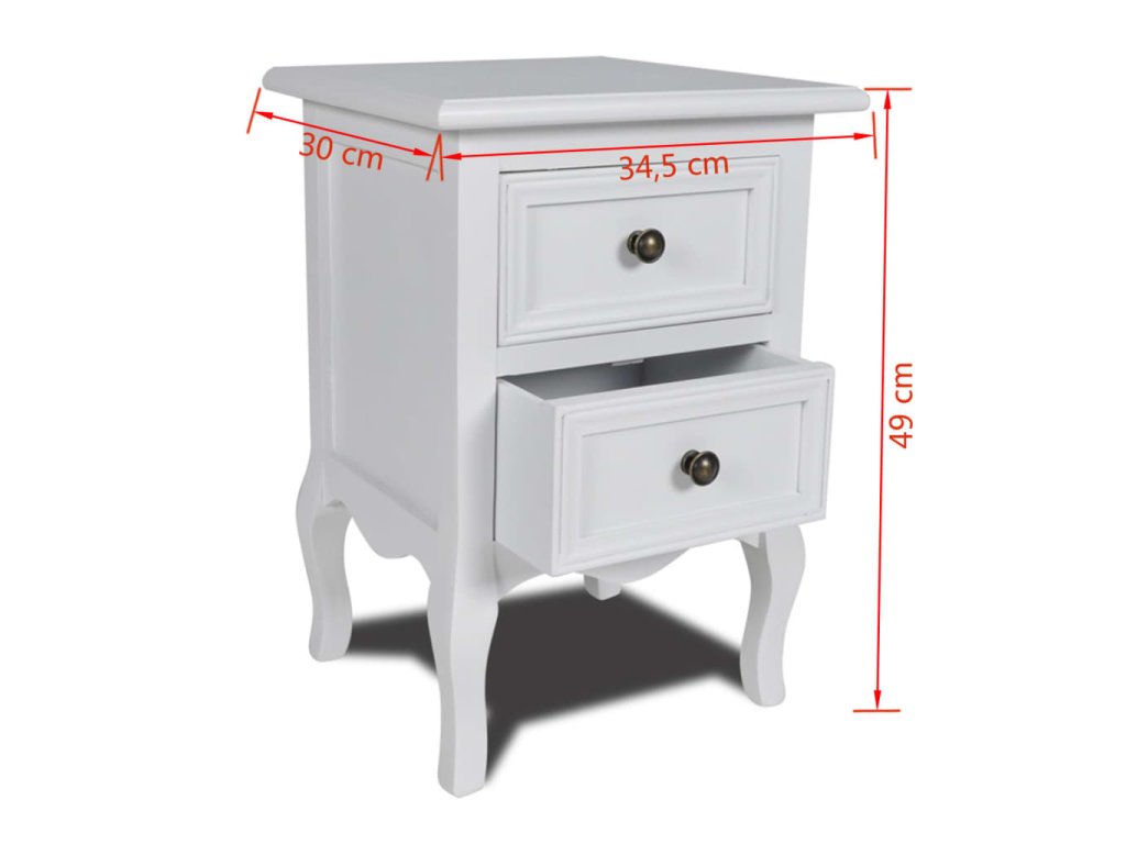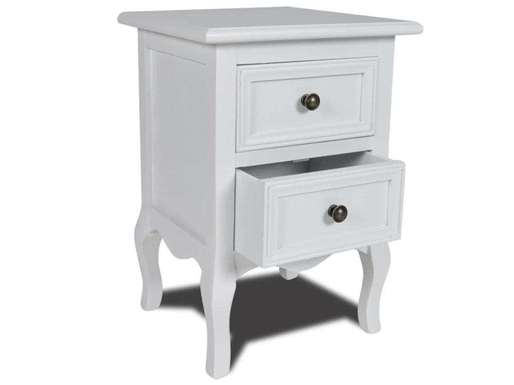 Tento biely nočný stolík s dvoma zásuvkami dodá vašej spálni štýlový vzhľad. Pevný drevený stolík s náterom je ako stvorený na odkladanie rôznych predmetov, ktoré chcete mať pri posteli a pomôže vám udržiavať v spálni poriadok.