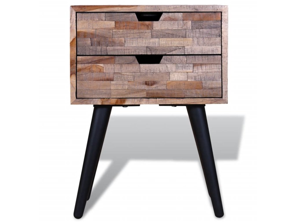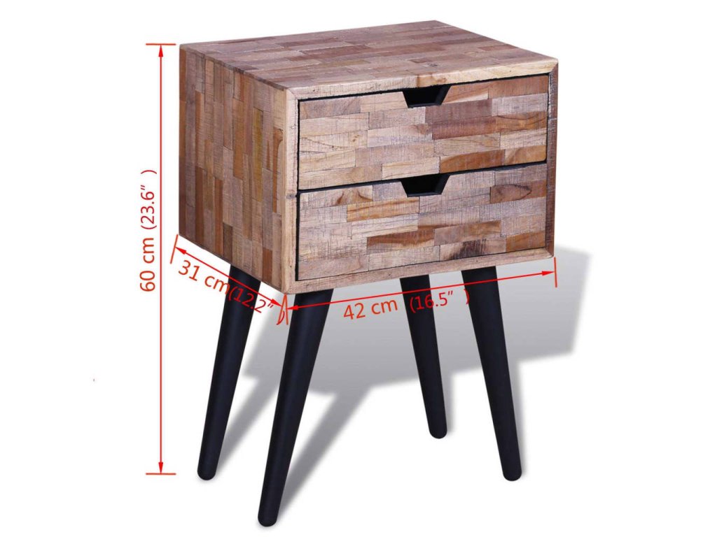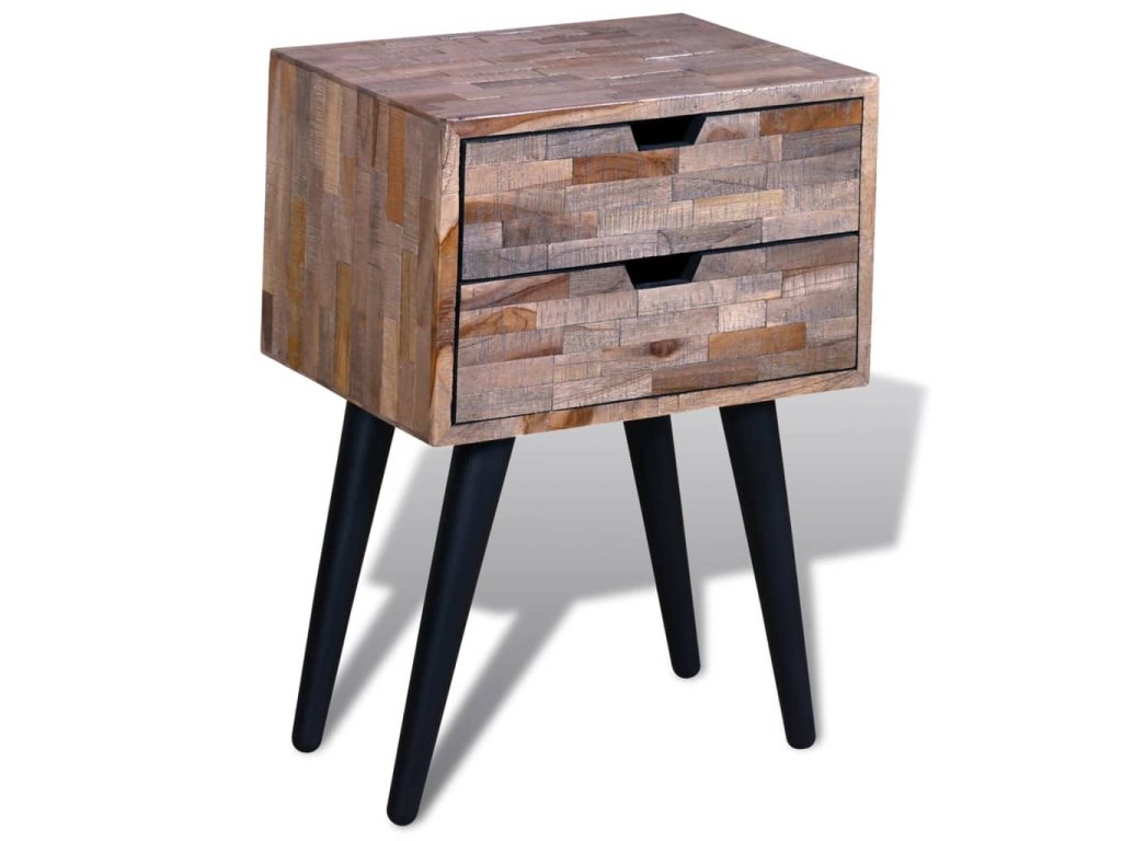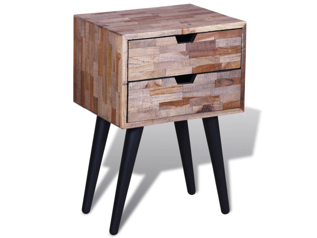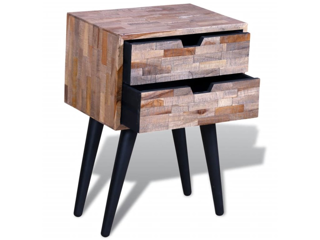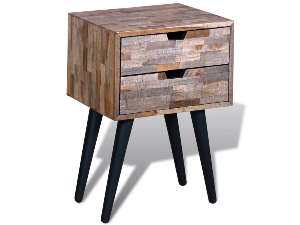 Tento nočný stolík je vyrobený z recyklovaného tíkového dreva, má štýlový dizajn s vintage prvkami a je naozaj praktický, a to vďaka dvom veľkým zásuvkám. Môžete ho využívať aj ako konzolovú skrinku, konzolový stolík, komodu či príručný stolík. Predstavuje skvelý doplnok do vašej spálne.