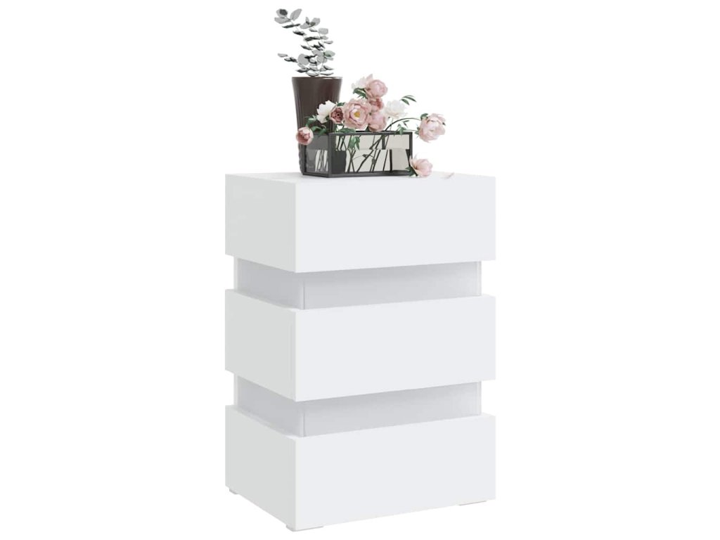 Nočný stolík vyrobený z kvalitného kompozitného dreva je stabilný a dá sa ľahko očistiť navlhčenou handričkou. Skrinka k posteli poskytuje množstvo úložného priestoru na časopisy, knihy, ovládače a ďalšie drobnosti, ktoré tak budete mať prehľadne odložené a vždy poruke. Súčasťou balenia je aj LED svetlo, ktoré stolíku dodá moderný vzhľad. Tento nočný stolík má všetko, čo potrebujete!