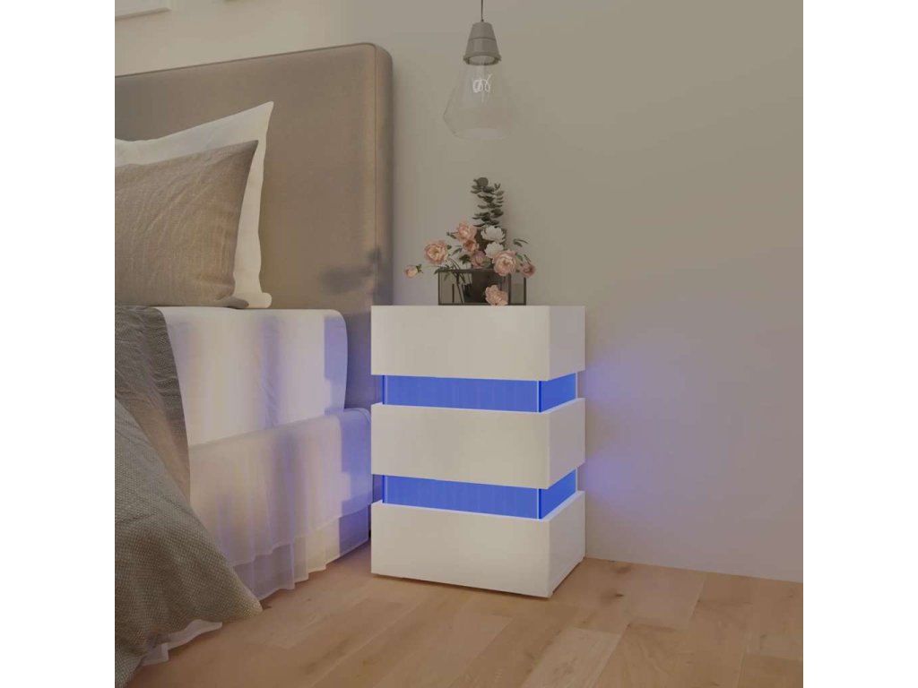 Nočný stolík vyrobený z kvalitného kompozitného dreva je stabilný a dá sa ľahko očistiť navlhčenou handričkou. Skrinka k posteli poskytuje množstvo úložného priestoru na časopisy, knihy, ovládače a ďalšie drobnosti, ktoré tak budete mať prehľadne odložené a vždy poruke. Súčasťou balenia je aj LED svetlo, ktoré stolíku dodá moderný vzhľad. Tento nočný stolík má všetko, čo potrebujete!